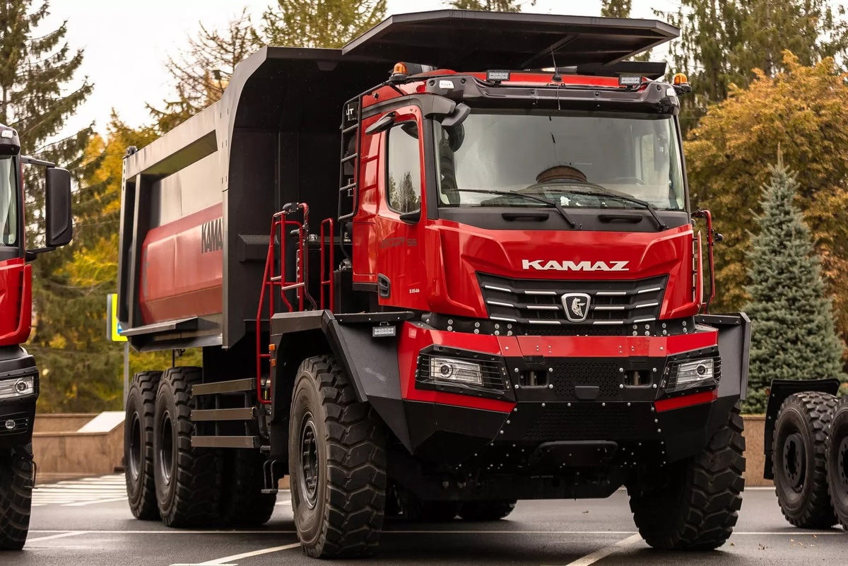 Интересные новики можно найти в экспозиции, которая развернута в центре Казани и приурочена к проходящему здесь саммиту БРИКС. Страна здесь презентует свои достижения в автомобилестроении, но учитывая местоположение проведения этого саммита, нетрудно догадаться, что в выставочной экспозиции приоритет будет отдан компаниям, работающим в Республике Татарстан. Естественно, что центром экспозиции стала продукция КАМАЗа. И в этой связи хотелось бы обратить внимание на самый большой самосвал в истории камского автогиганта. Речь идет о карьерном самосвале «Атлант-65» полной массой 95 тонн и грузоподъемностью 65 тонн. А это между прочим больше, чем у младших моделей белорусского БелАЗа. Именно таким моделям может составить конкуренцию этот камский самосвал. То есть этой моделью Камский автозавод "вторгается" в традиционную нишу белорусских карьерных автомобилей. Итак, что же за карьерник выставили камские автостроители? Самосвал «Атлант-65» пока представлен в виде опытного экземпляра. Планируе
