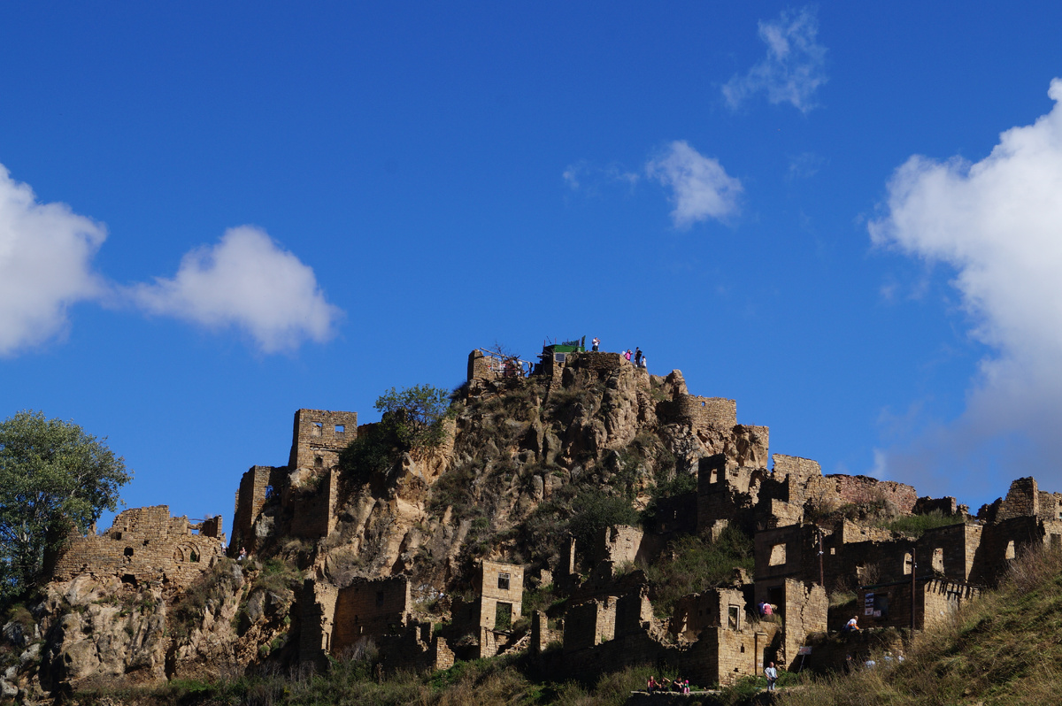 В Дагестане немало брошенных аулов. Горы - они ведь снизу прекрасны. Горцы любят слагать песни и легенды о том, какие они гордые люди, но ведь очевидно, что в такие каменистые выси их выдавили более сильные соседи, забравшие себе равнину. А сегодня человеку для комфортной жизни нужно намного больше, чем 100 или даже 50 лет назад. Поэтому люди переселяются в города или хотя бы большие села. И в центральной России много покинутых, умерших деревень. Это печальное зрелище, но вряд ли можно остановить процесс. Сейчас не об этом. Самый известный оставленный аул Дагестана - Гамсутль. С аварского название переводится как “у подножья ханской крепости”. Самой крепости я не видел, но говорят, что была. Селение очень старое, ему много веков. Когда стали подсчитывать численность населения, то она стабильно держалась около 200 человек. В советское время тут были медпункт с роддомом и магазин - какая-никакая, а цивилизация. Даже автодорога существовала. Но ее так давно не ремонтировали, что в эту инф