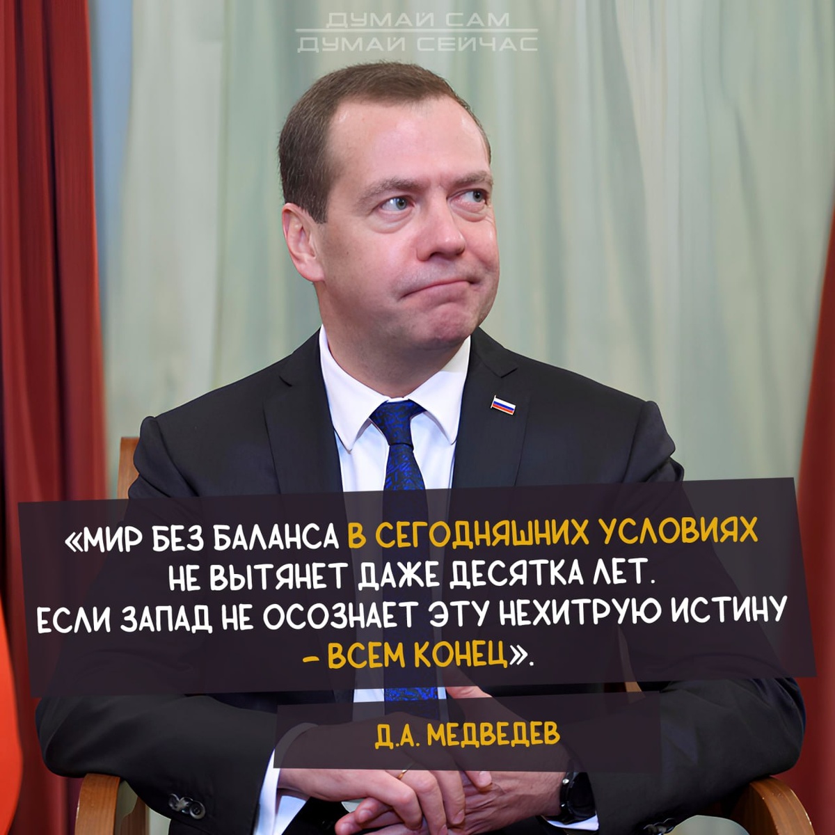 Экс-президент России, бывший глава российского правительства, а ныне зампред Совбеза РФ Дмитрий Медведев процитировал у себя в телеграме слова Федора Тютчева об извечной враждебности Запада к России и заявил, что теперь главная задача для нашей страны – «максимальное ослабление и унижение Запада, в том числе Европы». Цитируем его высказывание целиком, чтобы никто нас не обвинил в «вырывании из контекста»: «К сожалению, за прошедшие 160 лет ничего не изменилось. И задачи остаются прежними – максимальное ослабление и унижение Запада, в том числе Европы. В этом нам помогают и сами США. Ведь их цель – господство над Старым Светом (впрочем, как и над всем остальным миром). А дальше цель может быть только одна – распад самих США. Либо – как минимум – создание полноценного противовеса Америке, как это было в период существования Союза ССР и Варшавского договора. И здесь уже видны перспективы нового баланса: ШОС, БРИКС, иные региональные союзы, всемерное развитие отношений со странами Глобальн