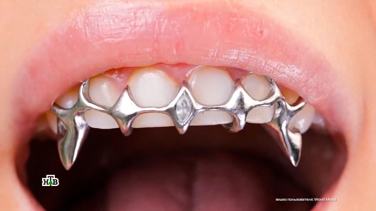 [ Смотреть видео на сайте НТВ ] Звезды иногда удивляют нас самым неожиданным образом — некоторые из них, например, поставили украшения себе на зубы. И такую услугу предлагают во многих салонах. Как это может изменить внешность и не опасно ли для здоровья? Голливудские улыбки часто украшают съемные конструкции или гриллзы — они пришли из рэп-культуры 80-х и распространились по миру. Каждую накладку отливают по слепку челюсти (гипсовому или цифровому), чтобы она точно повторяла форму зубов, не выпадала во время разговора и не ощущалась. Из материалов чаще всего используются стоматологический сплав кобальт-хром или золото — они не вступают в реакцию со слюной и не окисляются. А внешний вид — это всегда полет фантазии. Можно добавить эмаль, инкрустировать драгоценными камнями или сделать барельеф. Зубные аксессуары из драгметаллов стоят порой сотни тысяч рублей. Но есть варианты дешевле. Накладки на верхнюю и нижнюю челюсти с маркетплейса обойдутся всего в 350 рублей. Украшение на два зуба