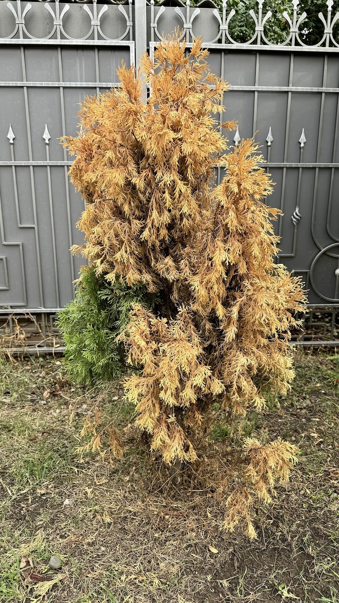 Туи нуждаются в правильном питании, особенно весной и летом. Дефицит микроэлементов (магния, железа, азота) может привести к потере насыщенного цвета хвои.