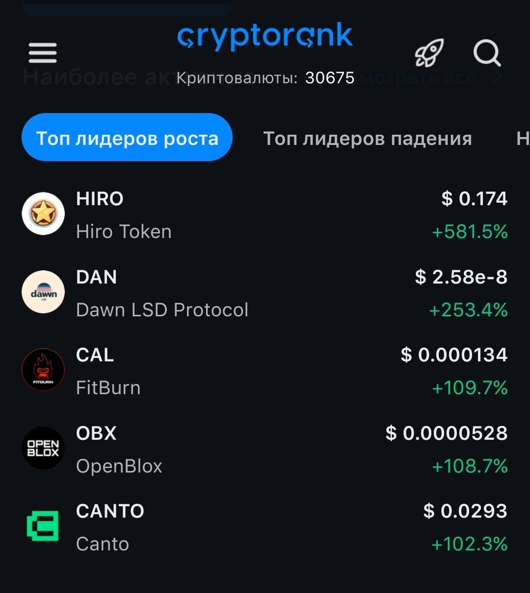 #DAWR #криптовалюты #topgainers #hiro #dan #cal #obx #canto