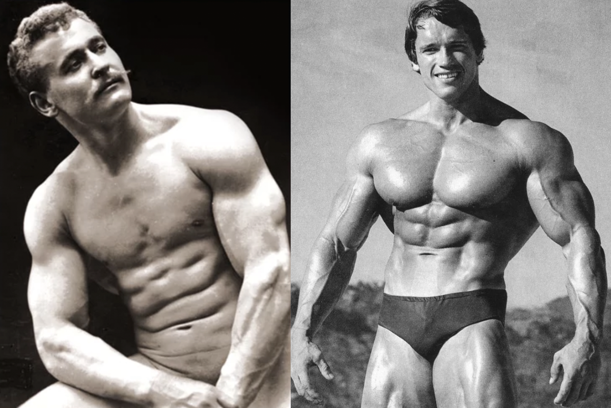 Отцом современного бодибилдинга по праву считается Евгений Сандов. Именно он первым в современной истории возродил античную практику тренировать своё тело так, чтобы оно смотрелось и массивным, и эстетичным. Просто для наглядного сравнения, ярким представителем Серебряной эры можно считать первых посетителей спортзала «Масл Бич», что расположен в Калифорнии. Золотая же эра началась во времена Арнольда Шварценеггера, Франко Коломбо и Сержо Оливы – внешний вид именно этих атлетов немного разных по фигуре и по телосложению, лучше всего иллюстрирует те каноны и стандарты красоты мужского телосложения, которые продержались с начала 70-х до начала 90-х годов.