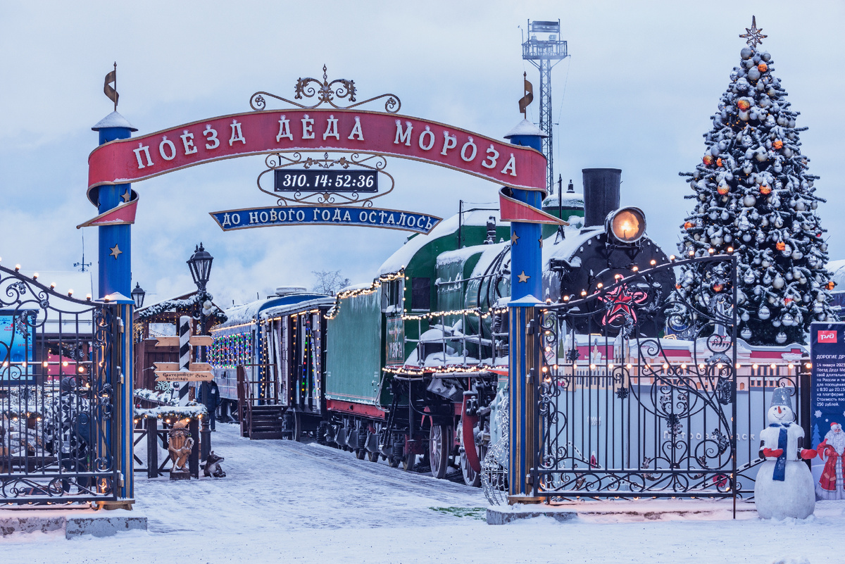 Передвижную резиденцию Деда Мороза активно готовят к дальнему путешествию. Совсем скоро главный даритель страны отправится в путь в компании помощников-аниматоров и фотографов, чтобы доставить сказку, веселье и сладкие сувениры юным россиянам. В этом году праздничный состав преодолеет 30+ тысяч километров, проедет страну от востока до запада и остановится в 60 городах. Полный их список представлен на официальном сайте проекта. Празднично оформленный поезд стартует из Тайшета Иркутской области 19 ноября, а финальной точкой его маршрута станет вотчина российского Деда Мороза в Великом Устюге. В неё он прибудет 11 января. В состав кроме вагона-приёмной включены вагон-ресторан и вагон-буфет, а также вагоны для игр, чаепитий и кукольного театра. Своих гостей Дед Мороз поздравляет со специальной сцены. Нашлось место и для мини-фотостудии, где можно сделать моментальный снимок с главным волшебником страны. «Поезд Деда Мороза» — совместный проект правительства Вологодской области и «Российских