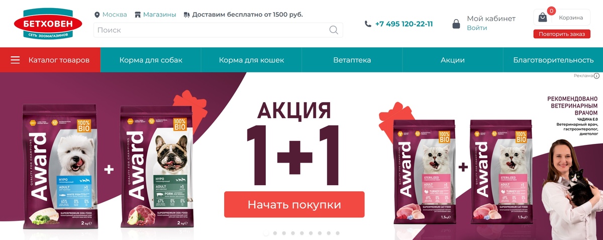 - Наличие ветеринарных кормов и продукции премиум-класса