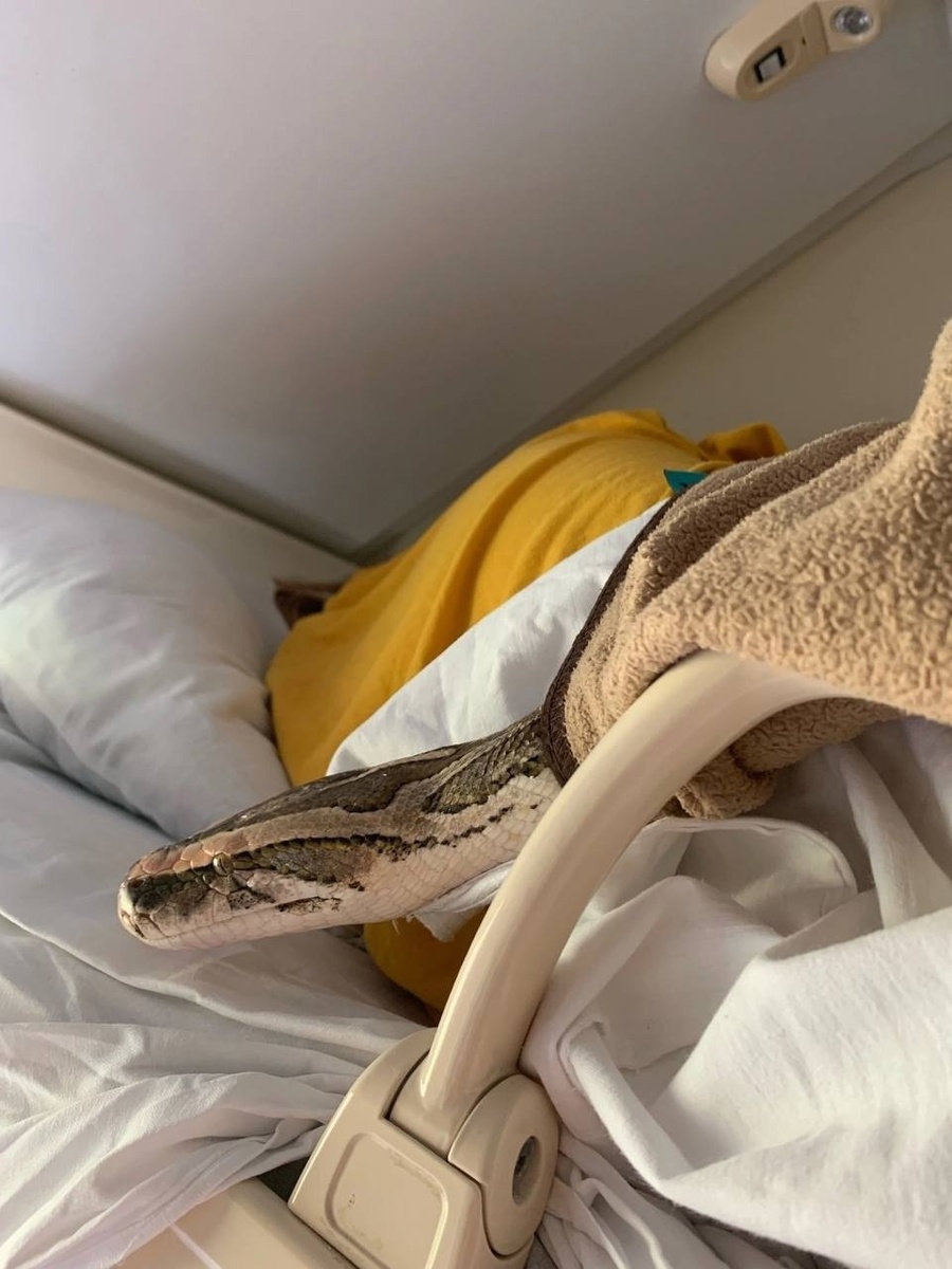 «Кому смешно, а кому инфаркт». Мужчина показал, как ехал в купе с питоном