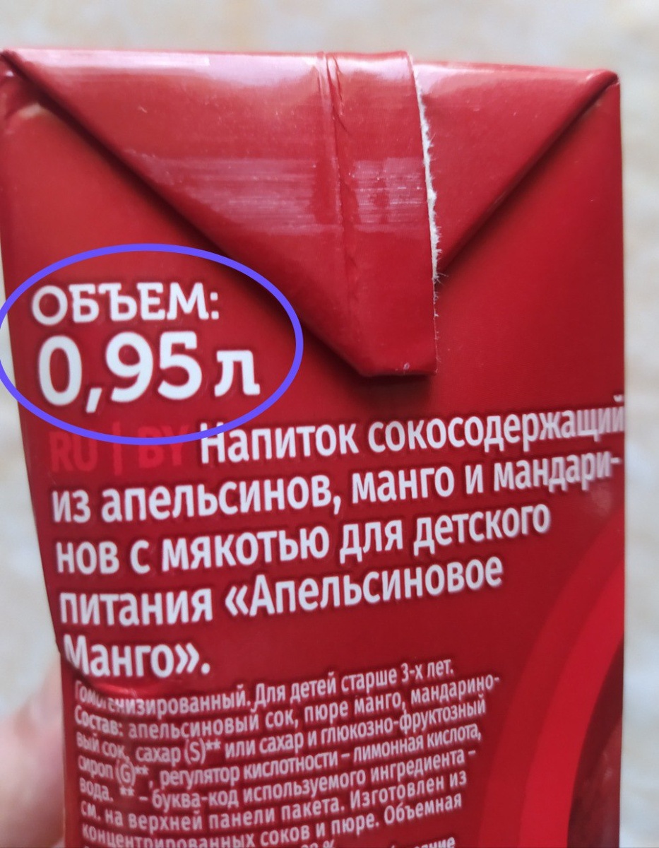 Например, молоко часто продаётся объёмом от 873 до 950 мл, а сливочное масло — 160-180 гр.