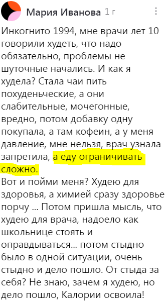 Тоже история читательницы, которая взяла на себя большие обязательства по изменению рациона. Я не буду приводить сюда всю переписку, растянутую на несколько статей. Только начало и результат. Наше общение началось с коммента читательницы: