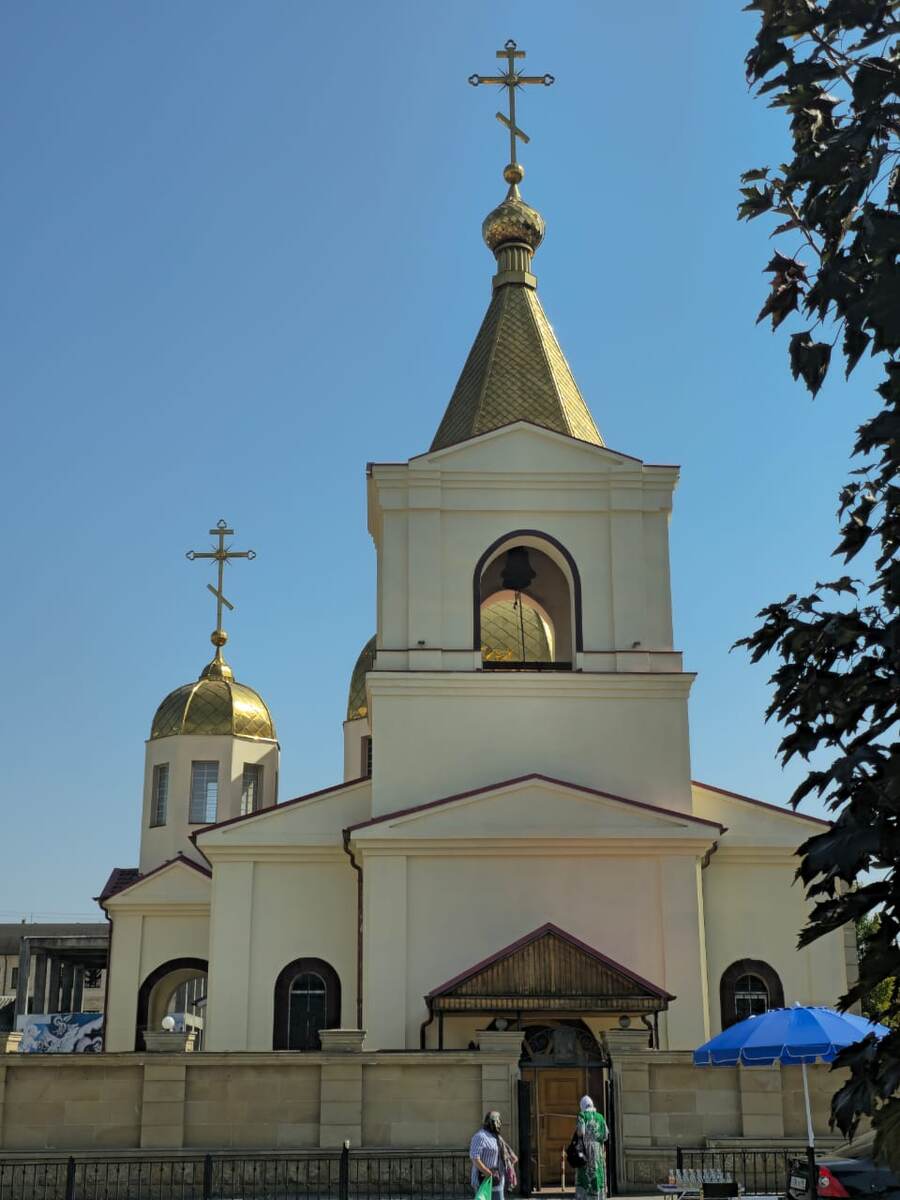В Чеченской Республике в городе Грозный перед "Цветочным парком" светится золотыми купалами Храм Михаила Архангела — православный храм. Мы посетили его по пути в Грозный-Сити. На входе досмотр и охрана. Все серьёзно, меры безопасности усилили после совершенного теракта в 2018году. Храм был построен в 1868 году на пожертвования армянских и русских купцов, а строительством занимались терские казаки. Комплекс серьёзно пострадал в период первой чеченской войны. Была разрушена крыша колокольни, купол богослужебной части, купол алтарной части, купол боковой пристройки, повреждён второй этаж церковного дома. В ходе второй чеченской войны храмовый комплекс получил дополнительные разрушения, но богослужения продолжались в подвале церковного дома. Сейчас храм восстановлен и открыт для прихожан. Храм маленький, чистенький, светлый и производит благоприятное впечатление. Имеет уютную прихрамовую территорию и пару административных построек. Является довольно известной достопримечател