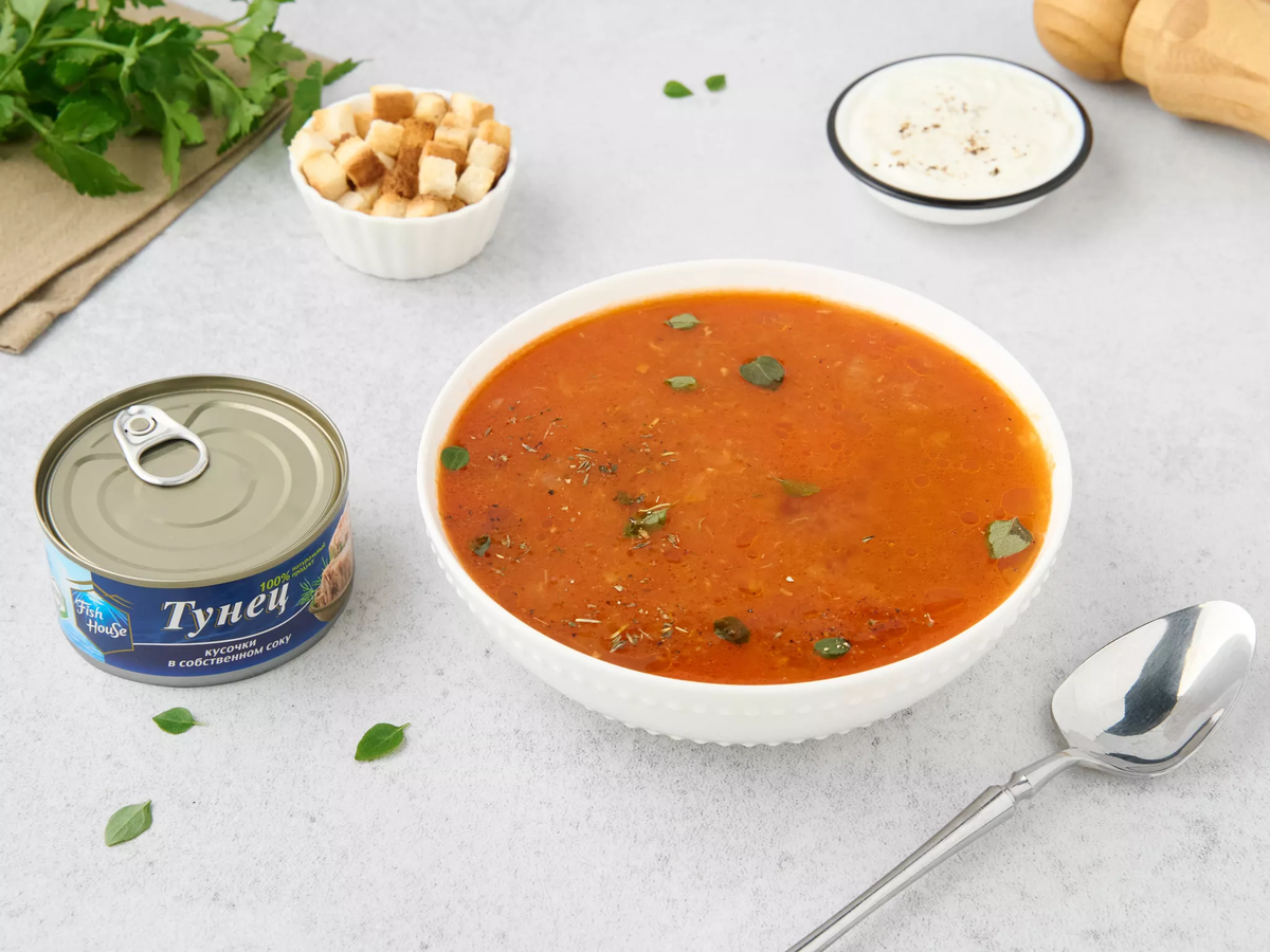 Суп «три банки» назван так из-за своей простоты в приготовлении. Основными ингредиентами являются всего три банки консервов: фасоль, протёртые томаты и тунец в собственном соку. Остаётся лишь добавить немного овощей для усиления вкуса. Готовится он быстро — всего в одной кастрюле, что значит, что после приготовления вам не придётся сильно убирать. Начните с того, что тщательно промойте овощи, затем обсушите их с помощью бумажного полотенца и очистите. В большой кастрюле нагрейте 2 ст. л. растительного масла на среднем огне, добавьте мелко нарезанный лук и чеснок, предварительно пропущенный через пресс. Обжаривайте их, постоянно помешивая, до тех пор, пока лук не станет мягким. Промойте консервированную фасоль в дуршлаге и дайте ей стечь. Затем добавьте фасоль в кастрюлю вместе с тунцом и протёртыми томатами. Тушите все ингредиенты в течение 2-3 минут, не забывая помешивать. Залейте содержимое кастрюли 1 литром воды, посолите и поперчите по вкусу. Доведите суп до кипения, затем умень