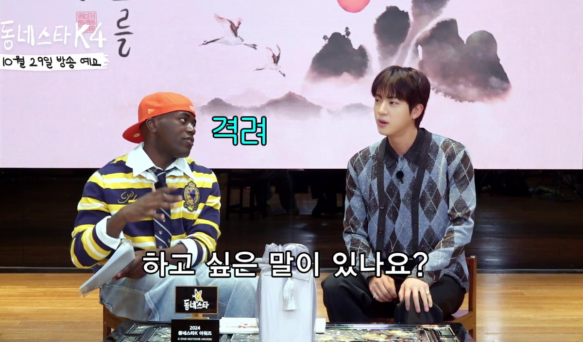 Добрый день. Новости от "Магии Азии". Только мы сообщили, что Джин-а берет перерыв в шоу RUN JIN, как нас засыпали оповещениями об участи Всемирного Красавца в других проектах. 29 октября в 12:00 по МСК на канале YouTube-шоу K-Star Next Door (K-звезда по соседству) выйдет 31-й эпизод шоу с участием Джина. Сокджин теперь участвует в разговорных шоу, и придет в гости к ведущему Джонатану. И слава богу, а то после последнего эпизода "Беги, Джин", у нун уже не выдерживают сердечки! Шоу K-Star Next Door - это караоке шоу, так что мы возможно услышим серебрянный голос Джина не только в шутках, но и в песнях. Уже идет 4-й сезон шоу, и в гостях у Джонатана побывало много молодых звезд, такие как ILLIT, TXT, Stray Kids, BABYMONSTER. Так как же вечно молодой айдол-сольник Джин 5-го поколения может пропустить этот проект?! Да никак! К тому же, шоу юмористическое, и сдается мне, что шутить будет не "конголезский принц Джонатан" (как ласково величают ведущего), а король к-поп и властитель "дедовс