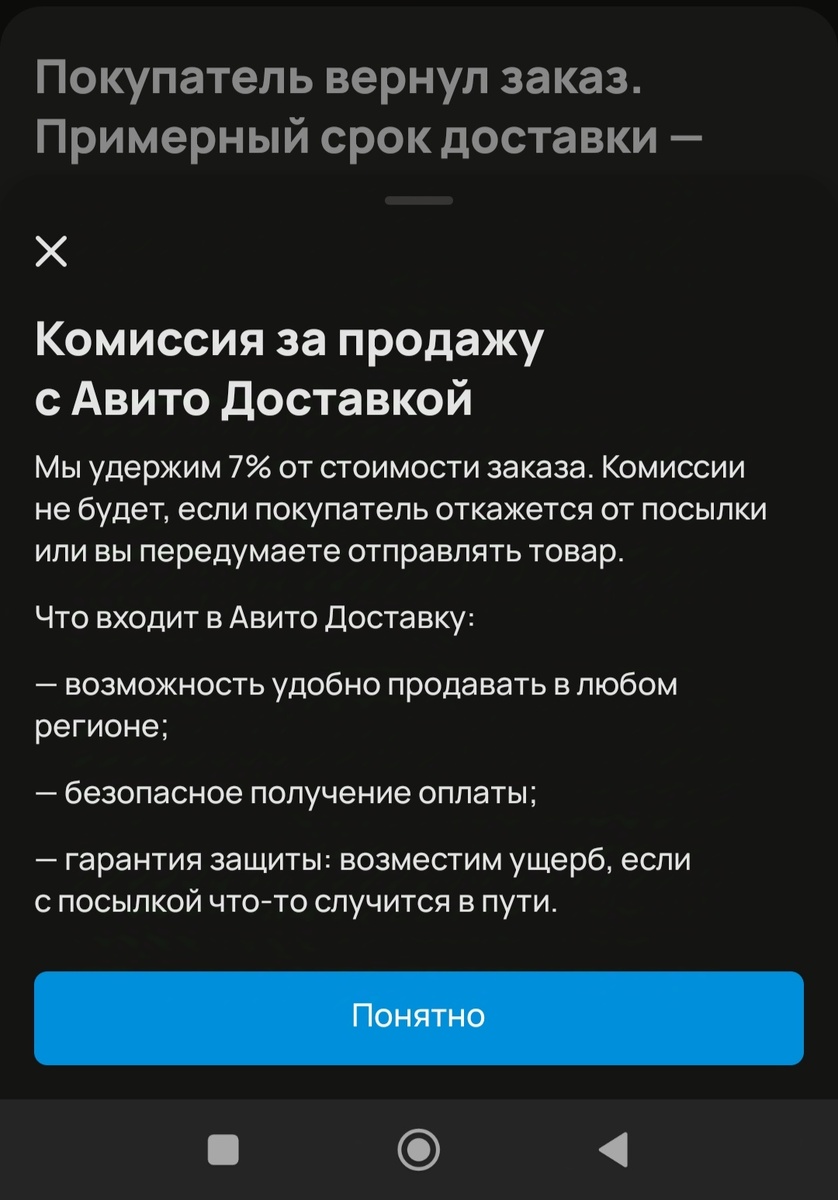 Ну вот я и сам столкнулся с тем, что Авито не выплачивает деньги продавцам. Разместил объявление о продаже источника питания. Включил доставку и через некоторое время у меня его заказали доставкой через почту России. Как положено, я упаковал посылку, предварительно все о фотографировав. Отправил посылку и получил в приложении Авито статус - доставляется. На всякий случай ввел трек-номер в приложении почты. Спустя три дня посылка приехала к покупателю. От приложения почта пришло уведомление о том, что посылка получена. Я сразу зашёл в приложение Авито... И что же я там вижу. Статус посылки - возврат. Звоню покупателю, а он мне говорит, что посылка у него и присылает мне фото, что она действительно у него. Я пишу в поддержку Авито и получаю ответ - ждите когда посылка вернётся. Естественно, я им отправляю фото и скриншоты о том, что посылка доставлена и получена покупателем. Но снова получаю ответ, что посылка едет ко мне. Естественно никаких денег и товара я не получу. Поэтому сто раз