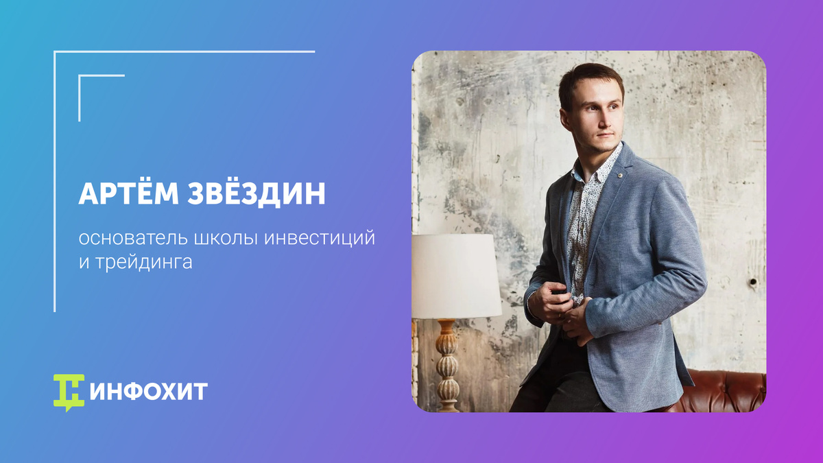Профессиональный трейдер, инвестор. Создатель проекта «Умный Инвестор». Автор книг по торгам на бирже. Основатель школы инвестиций и трейдинга. Разработчик и ведущий обучающих онлайн-курсов по торговле. Год рождения: 1988 Место проживания: г. Сочи Деятельность: трейдинг, обучение торговле на бирже Достижения: - квалифицированный инвестор (аттестован ЦБ РФ в 2019 году), - 71% прибыльных сделок, - автор книг о трейдинге, - основатель школы инвестиций, - 96% безубыточных учеников. Образование: МИУ (2010, Юридическое), МИУ (2012, Психология), ФСФР (2019, Специалист финансового рынка) Обучающая деятельность: с 2014 года Авторская методика торгов Артёма Звёздина основана на личном опыте. Стартовал в карьере в 2008 году с момента первого появления на бирже. В начале пути будущий востребованный трейдер и инвестор записывал сделки и подробно анализировал их. Несколько лет Артём потратил на поиск идеальной модели поведения на финансовом рынке. Результат этого труда — собственная авторская метод