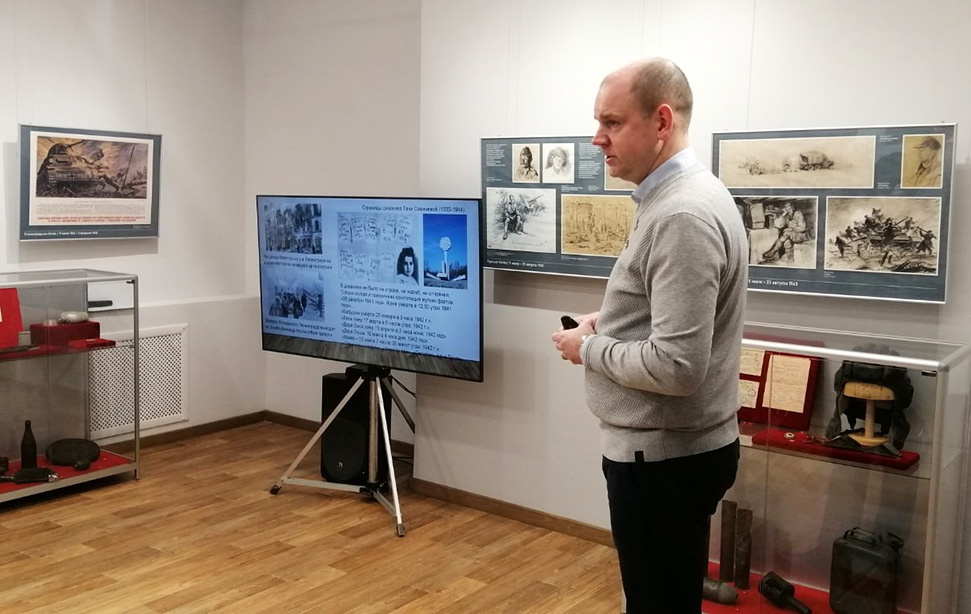 В Музее воинской славы имени В.М. Григора открылась выставка к 80-летию освобождения Ленинграда от фашистской блокады. В экспозиции представлено около 30 произведений графики, написанных ленинградскими художниками, середины XX – начала XXI века из частного собрания известного искусствоведа, директора Института художественных и гуманитарных проектов ЯНАО Дмитрия Фролова. На открытие пришли воспитанники центра «Кадет». Дмитрий Александрович в формате разговора о важном рассказал им о страшных 872 днях ленинградской блокады и провел первую экскурсию по выставке. Символ осажденного города