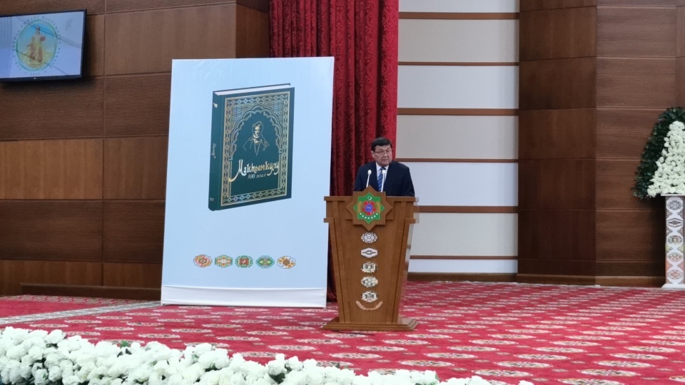 Ашхабадда Магтымгулы Фрагинин кыргыз тилиндеги чыгармалар жыйнагынын бет ачары.
