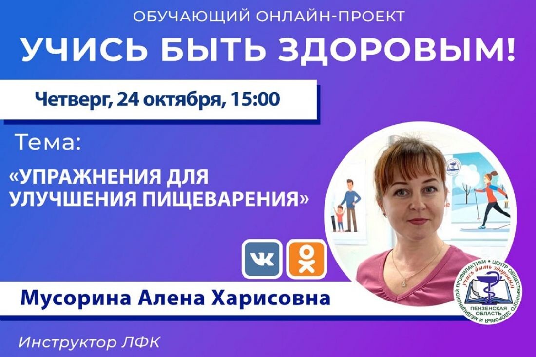 Пензенский врач расскажет об улучшении пищеварения с помощью физкультуры