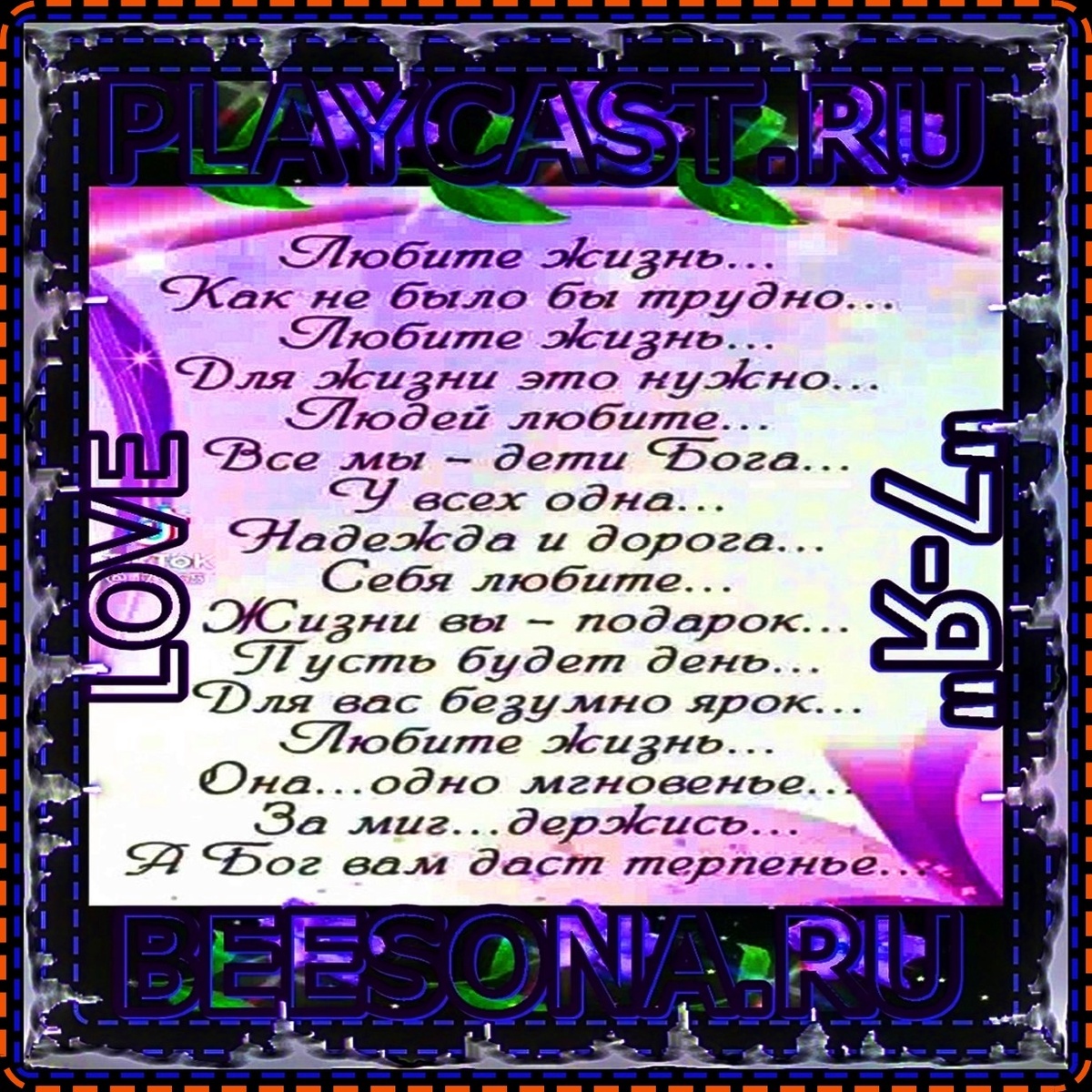 ☦_❤️"ЛЮБИТЕ ЖИЗНЬ... КАК НЕ БЫЛО БЫ ТРУДНО... ЛЮБИТЕ ЖИЗНЬ... ДЛЯ ЖИЗНИ ЭТО НУЖНО... ЛЮДЕЙ ЛЮБИТЕ... ВСЕ МЫ-ДЕТИ БОГА... У ВСЕХ ОДНА...ЛЮБИТЕ ЖИЗНЬ... ОНА... ОДНО МГНОВЕНЬЕ... ЗА МИГ... ДЕРЖИСЬ... А БОГ ВАМ ДАСТ ТЕРПЕНЬЕ..."❤️_☦ https://www.zhivopismira.ru/id4310/paint/48923/ ******** ☦_❤️"ЛЮБИТЕ ЖИЗНЬ... КАК НЕ БЫЛО БЫ ТРУДНО... ЛЮБИТЕ ЖИЗНЬ... ДЛЯ ЖИЗНИ ЭТО НУЖНО... ЛЮДЕЙ ЛЮБИТЕ... ВСЕ МЫ - ДЕТИ БОГА... У ВСЕХ ОДНА... НАДЕЖДА И ДОРОГА... СЕБЯ ЛЮБИТЕ... ЖИЗНИ ВЫ - ПОДАРОК... ПУСТЬ БУДЕТ ДЕНЬ... ДЛЯ ВАС БЕЗУМНО ЯРОК... ЛЮБИТЕ ЖИЗНЬ... ОНА... ОДНО МГНОВЕНЬЕ... ЗА МИГ... ДЕРЖИСЬ... А БОГ ВАМ ДАСТ ТЕРПЕНЬЕ..."❤️_☦ https://www.beesona.pro/id33713/paint/24789/