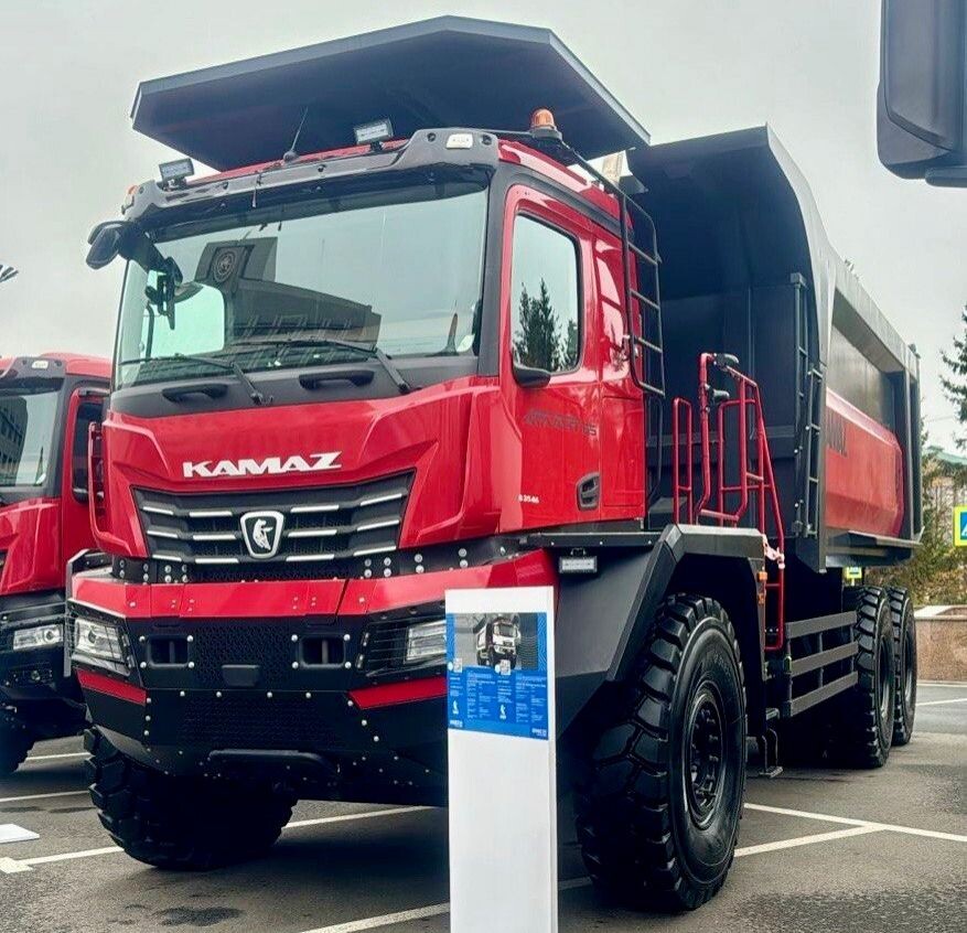 Камский автозавод представил новый карьерный самосвал КАМАЗ-65685 («Атлант 65») на выставке «Сделано в Татарстане». Мероприятие проходит в Казани с 20 по 25 октября в рамках XVI саммита БРИКС. Новинка предназначена для транспортировки скальной и горной породы в средних и малых карьерах в районах с холодным климатом, сообщает пресс-служба предприятия. КАМАЗ-65685 («Атлант 65») оборудован новой кабиной К5 с защитой ROPS/FOPS. Мощность его двигателя составляет 560 л.с. В числе других экспонатов выставки – седельный тягач КАМАЗ-54901 в сцепке со шторным полуприцепом объёмом 92 м, грузовик КАМАЗ-65954, самосвал КАМАЗ-65959 (6х6) и электробус КАМАЗ-6282 ONC с ночной зарядкой. Фото: пресс-служба ПАО «КАМАЗ»