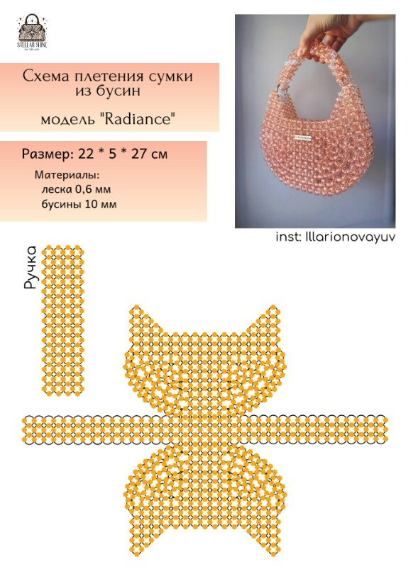Сумка данной модели подойдет уже мастеру с опытом, здесь важно четко следить за количеством бусин и определенным порядком плетения, делюсь схемой)