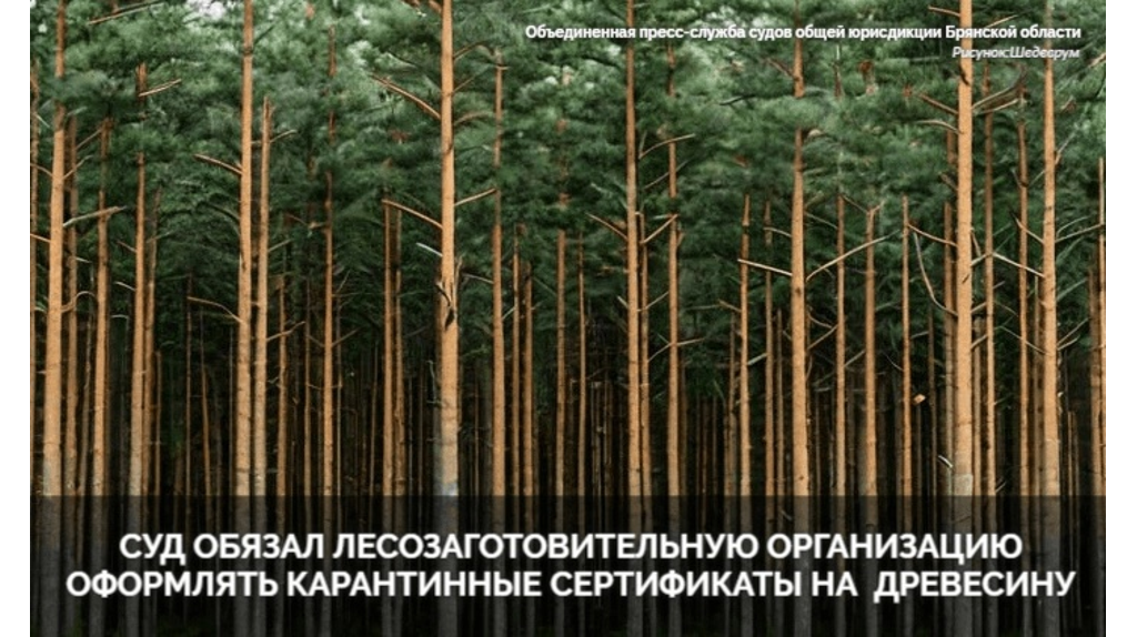 В Брянске Советский районный суд рассмотрел иск регионального Управления Россельхознадзора к ООО «Кедр+». Ведомство потребовало принудить фирму к оформлению карантинных сертификатов на вывозимую древесину. В 2024 году по результатам фитосанитарного мониторинга был введен карантинный фитосанитарный режим по стволовым вредителям хвойных пород леса в Дятьковском лесничества. ООО «Кедр+» при вывозе древесины из карантинных зон сертификаты не оформляло. Тем самым создавалась угроза распространения карантинных объектов. Суд иск удовлетворил. Фирму обязали обеспечить наличие сертификата на каждую партию вывозимой продукции за пределы фитосанитарной зоны. В Брянске суд обязал ООО «Кедр+» оформить карантинные сертификаты на вывозимую древесину