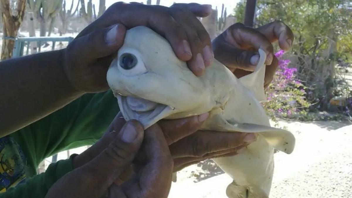 Когда опытный рыбак Энрике Лусеро Леон выходил в Алое море (море Кортеса) ранним февральским утром, он и подумать не мог, какой неожиданный улов ждет его недалеко от острова Жака Кусто. Акулы в Калифорнийском заливе — это не редкость. Опытного рыбака таким не удивишь, и их вылов в этих водах считается легальным, если есть разрешение. У нашего Энрике оно было — ведь он рыбачит в этой акватории уже много лет. Так что обнаружив среди улова темную (сумеречную) акулу среднего размера, мексиканский рыбак лишь развёл руками — мол, что с тобой делать, золотая рыбка? Но он заблуждался. По-настоящему золотой была другая «рыбка» — одна из приплода этой акулы, оказавшаяся внутри самки. Детёныш был циклопом-альбиносом. Да-да, уникальнейший экземпляр длиной чуть больше полуметра с огромным глазом по центру лба. Абсолютно белая кожа и вогнутая мордочка придавала детёнышу сходство скорее с дельфином, чем с акулой. Ни сам Энрике, ни другие работавшие с ним рыбаки подобных акул отродясь в Алом море не в