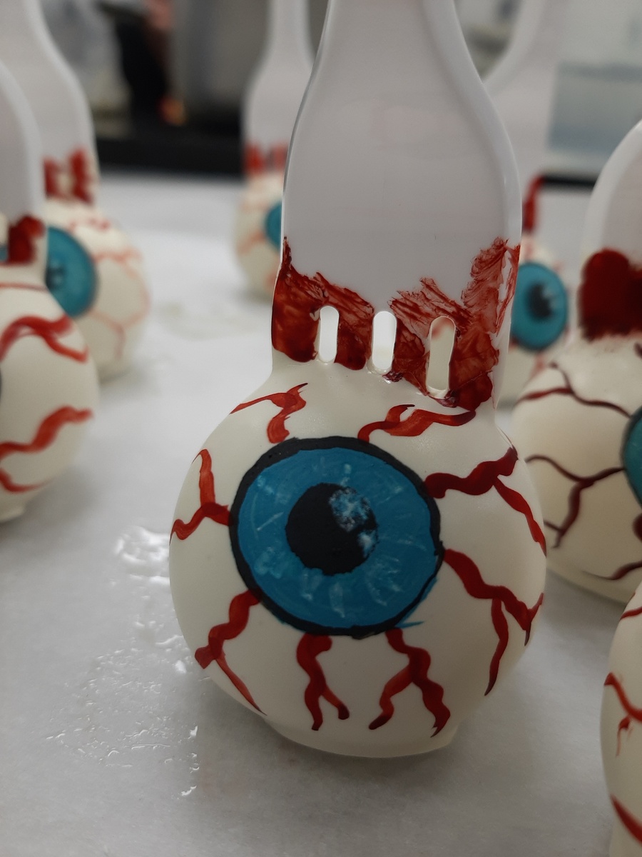 Хэллоуин — это не только страшные костюмы и украшения, но и возможность удивить гостей прикольными и немного жуткими сладостями! В этой статье я поделюсь крутыми идеями десертов, которые украсят ваш стол и точно понравятся всем. Начнем с ярких и необычных кейк-попсов из пирожного картошка, покрытых белым шоколадом. Они привлекают внимание и идеально подходят для создания таинственной атмосферы. "Кровавые" разводы, выполненные с помощью пищевых красителей, добавляют десерту эффектность, а подача на вилке делает его удобным для гостей. Веселый и яркий торт-монстр, покрытый "шерстью" из крема, станет центральным элементом вашего праздничного стола. Яркий синий цвет, большие глаза и кусочки печенья создают необычный и запоминающийся образ, который вызовет улыбки у всех гостей. Для повторения "пушистости" используйте насадку трава и крем на масле комнатной температуры. Макаронсы — это всегда изысканный и красивый десерт, а с добавлением хэллоуинских элементов он становится ещё более привле