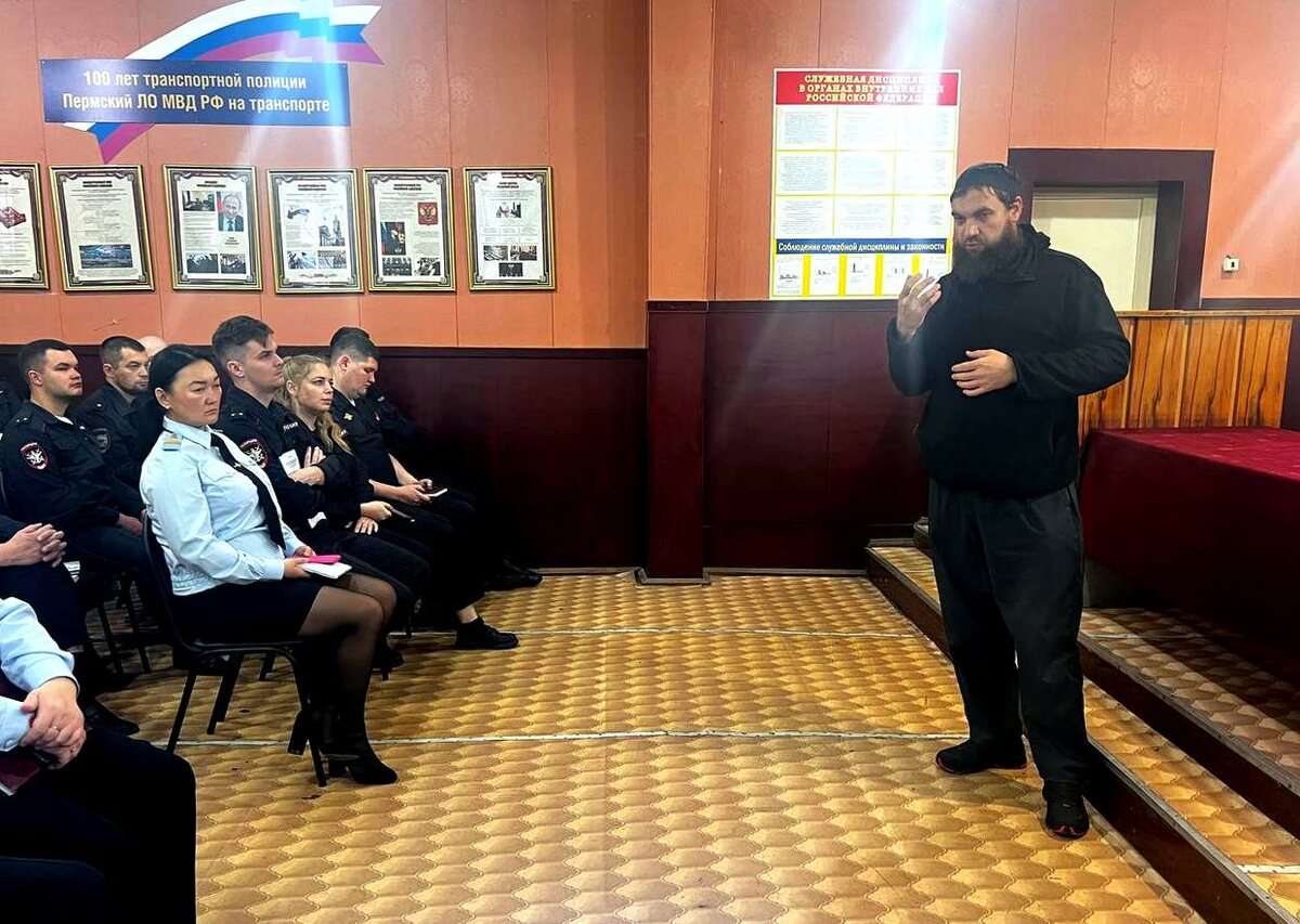 ☝ Как сообщила нам пресс-секретарь профильного ведомства Елена Осмоловская, на днях сотрудники Пермского линейного отдела МВД России на транспорте встретились с Дмитрием Некрасовым, который является представителем исламской конфессии в регионе и преподает основы ислама в «Пермском исламском колледже» в ходе которой приглашенный к правоохранителям гость рассказал стражам порядка об основах религии ислама, ее особенностях и о том, кто и в каких странах исповедует мусульманство. ❗ Особое внимание, представитель конфессии обратил внимание на то, что явление экстремизма и терроризма не имеют никакого отношения к мусульманству. - Сторонники и последователи радикальных взглядов идут по ложному пути и ошибочно трактуют суть исламского учения. Любая религия, в том числе и мусульманство, не призывает к насилию, - подчеркнул Дмитрий Некрасов. ✅ Подчеркнем, что мероприятие было организовано и проведено в рамках взаимодействия с религиозными организациями, поддержания межнационального диалога, а та