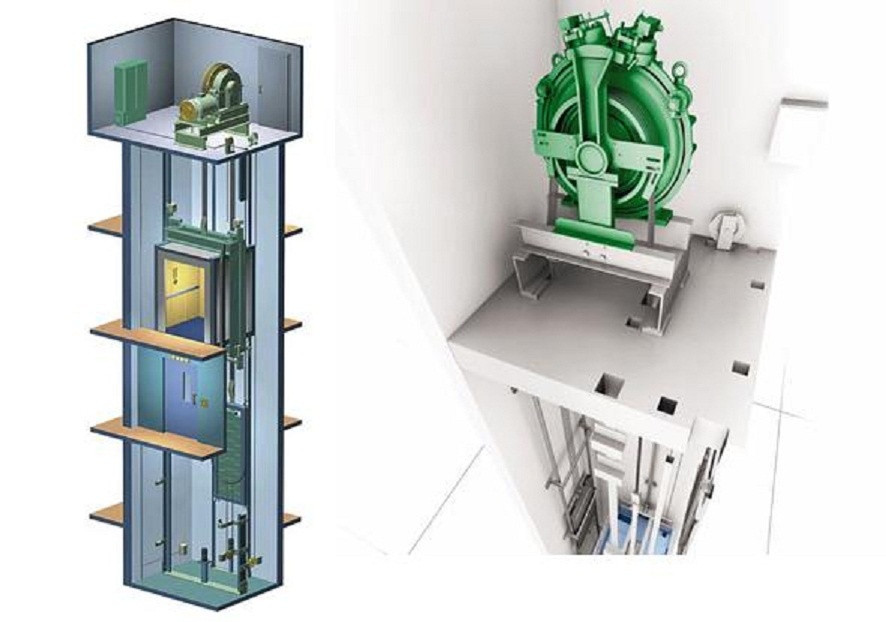 Одна из них механическое устройство безопасности, ограничитель скорости. Это вращающийся шкив, который установлен в машинном помещении (в самом верху шахты). Он соединен со шкивом, установленным в приямке (внизу шахты).