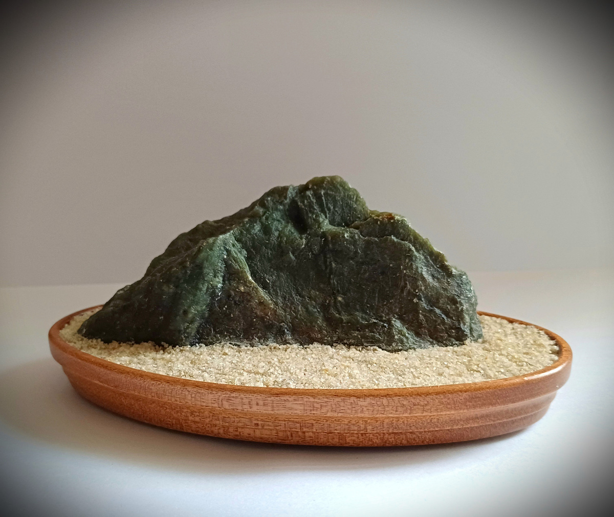 В перерывах между основными камнерезными проектами сочинил пару "суисек". Ну ведь совсем другой вид, нежели просто камни бы валялись в коробке. Такие вещи и подарить, и продать можно, и свой дом украсить. Нефрит 12*6*4 см, подставка красное дерево 17*8*2 см. Кварцевый песок проклеен. (Можно листать) Эвдиалит с эгирином 12*11*5 см, подставка сосна тонированная 17*8*2 см. Кварцевый песок проклеен. (Можно листать) Этот вариант творчества - "камни для созерцания" мне понравился. Теперь, помимо резьбовых камней, буду искать пейзажные камни. Обычно это горные пейзажи, но также могут быть красивые абстрактные формы или фигуратив, напоминающий животных, птиц и так далее. Странно что у нас в России это творчество не развито, по крайней мере я не встречал русские суисеки. В запретных соцсетях очень много сообществ мастеров суисеки - что в Мексике, что в Японии, по всему миру. А еще мастера делают стаффаж - добавляют к камням масенькие домики, кораблики для масштаба. Но с этим нужно очень акк