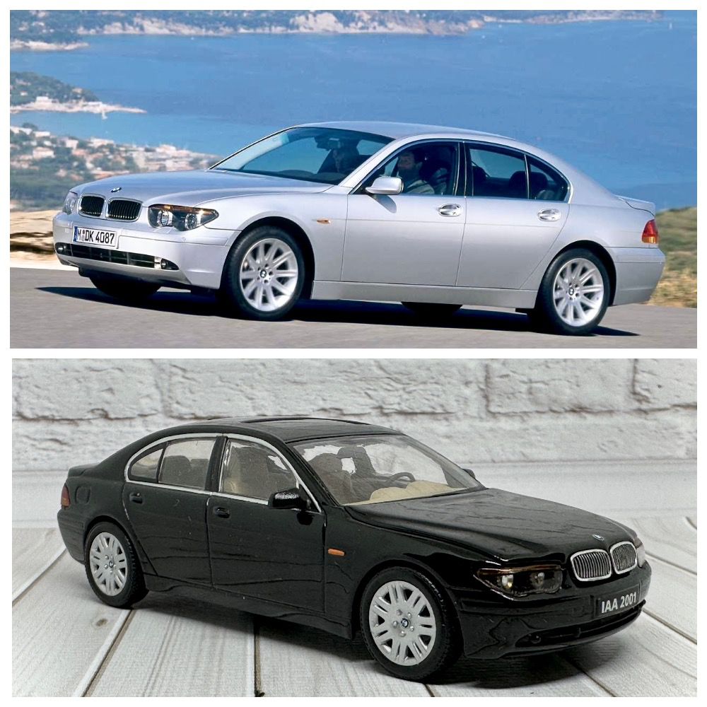 Я достаточно долго искал масштабную копию "семёрки" в кузове E65 для своей коллекции. Мне хотелось найти модель в чёрном кузове и непременно со светлым салоном. Удача мне улыбнулась и в мой гараж заехал именно такой роскошный седан.