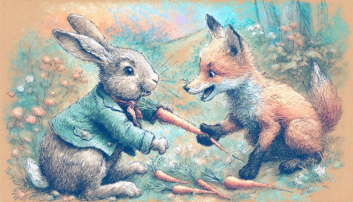В одном прекрасном лесу, среди высоких деревьев и мягкой травы, жили три закадычных друга: любопытный медвежонок Миша, игривая лисичка Рита и быстрый заяц Тим. Каждый день они были готовы к новым приключениям: исследовали лес, искали сокровища и развлекались в весёлых играх. Этот лес был полон чудес, и друзья всегда находили что-то новое и увлекательное. Однажды, когда солнечные лучи пробивались сквозь деревья, Миша, Рита и Тим собрались на полянке, чтобы насладиться приятным днём. Каждый из них принёс что-то особенное: Миша — мёд, Рита — свежие фрукты, а Тим — свежие морковки. Они решили устроить пикник, но внезапно между Ритой и Тимом разгорелась ссора. — Это моя морковка! — воскликнул Тим, когда Рита в шутку попыталась её взять. — А я принесла фрукты для всех, — ответила Рита с недовольной мордочкой. — Ты всегда берёшь всё самое вкусное себе! — Но я просто пошутил, — возразил Тим, фыркнув. — Ты никогда не понимаешь шуток! Миша, который наблюдал за ссорой, забеспокоился. Он подошёл к