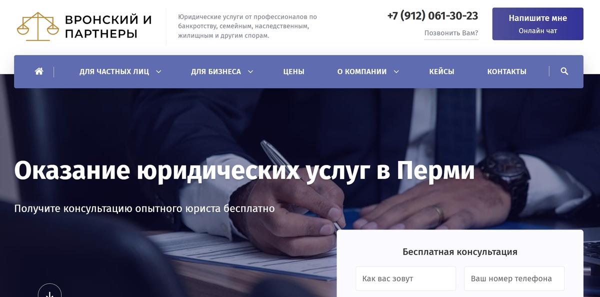 - Широкий спектр юридических услуг: от споров с недвижимостью до защиты бизнеса.