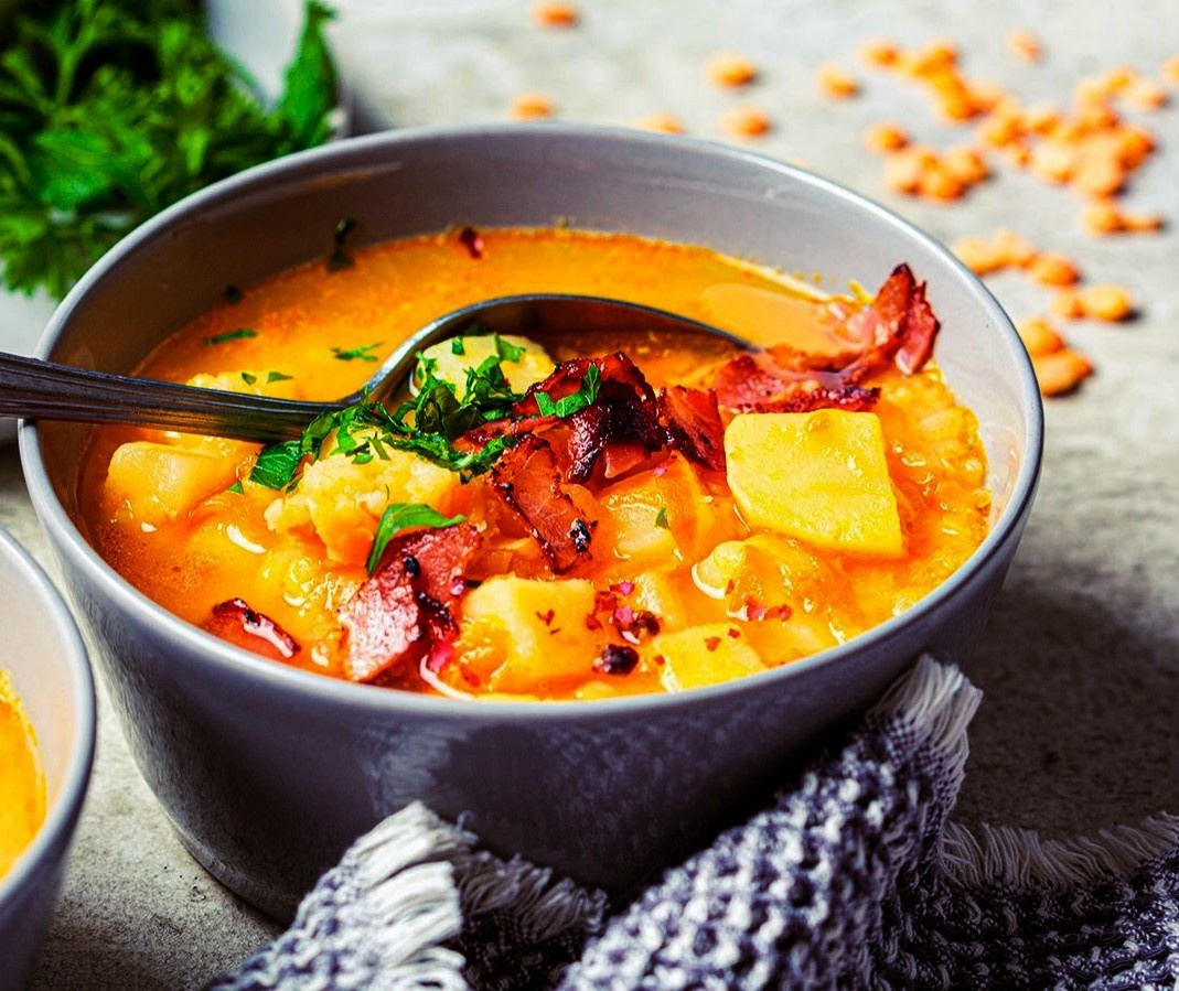 Классический гороховый суп с фаршем - сытное, аппетитное и простое в приготовлении блюдо, с использованием повседневных продуктов. Подавайте с гренками из хлеба, и вы получите восхитительное блюдо. 1. Горох промываем и высыпаем в кипящую кастрюлю (на 5 л). 2. Фарш обжариваем со специями и солью. Добавляем в кастрюлю с горохом. 3. Лук шинкуем и обжариваем на сковороде. 4. Морковь и чеснок измельчаем на тёрке и добавляем к луку. Жарим ещё пару минут и перекладываем обжарку в суп. 5. В кастрюлю добавляем душистый перец и гвоздику. Досаливаем и варим суп на среднем огне до полной готовности гороха. Понравился рецепт горохового супа? Пишите в комментариях.