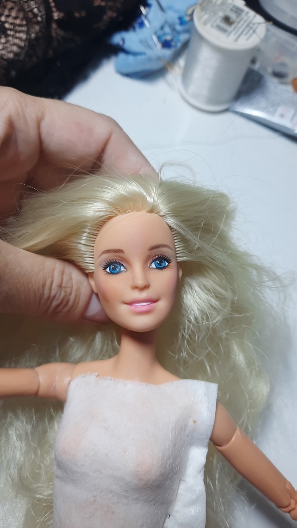 Здравствуйте. Если Мэрилин - бриллиант, то леди Ди, несомненно, сапфир. Так получилось, что на моем фестивальном стенде оказалось аж две знаменитые женщины. И обеих делать даже в мыслях не было. Просто, так получилось. История куклы, ставшей принцессой Дианой, долгая и извилистая. Нашла я её на Удельном рынке. Вывела пятна с личика, отремонтировала шею и сделала новую кисть. Потом она долго лежала в коробке, ожидая своей очереди. А когда я до нее добралась, она, вдруг, стала жгучей брюнеткой. Казалось бы, история окончена. Но, нет. Примерно полгода она у меня провела в таком виде. Но что-то не складывалось, и я решила вернуть родной блонд. Но стало еще хуже. Кукла, ставшая блондинкой, просто сидела на полочке, иногда служа манекеном при пошиве нарядов для других кукол. Её личико мне казалось грубоватым и не очень мне нравилось. В этот раз начиналось все так же. Я хотела взять на выставку рыжую Андру и нарядить её в вечернее платье. Для него мне понадобился корсет. По привычке, я взяла