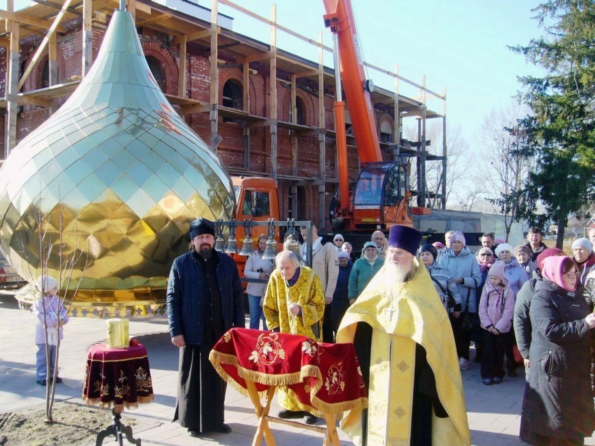 В прошедшую пятницу, 18 октября, в г. Благовещенске РБ, на улице Советская, д. 9, состоялось долгожданное для верующих, как впрочем и для всех горожан, событие — в торжественной обстановке, под колокольный звон, были подняты и установлены купол и Животворящий Крест Господень на восстанавливаемый храм Святых равноапостольных Кирилла и Мефодия, учителей славянских. Это не только важный шаг в восстановлении храма, который был основан на этом же месте в 1897 году (кстати, тоже в октябре, с разницей в 4 дня), но и значимое историческое событие для нашего города. Накануне Митрополит Уфимский и Башкортостанский Никон совершил обряд освящения купола и креста храма Святых равноапостольных Кирилла и Мефодия. Предыстория строительства нового храма такова. В 2021 году районная администрация передала здание Башкортостанской митрополии. И почти сразу силами епархии, меценатов и прихожан приступили к восстановлению церкви. Когда начали работы, при вскрытии полов обнаружили иконостас и вход в келью,