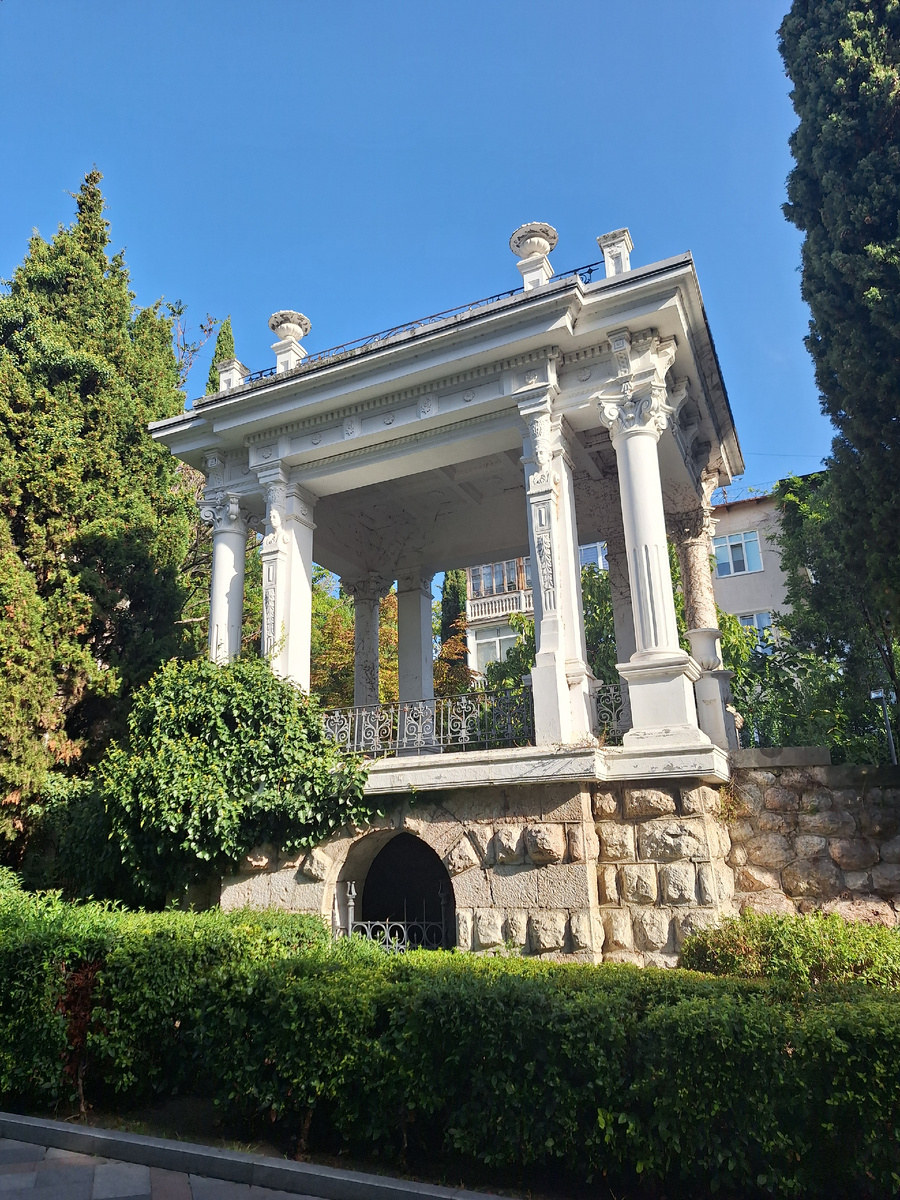 Я часто бываю в Ялте, а на улице Чехова живет моя подруга, которая работала в данном заведении. Мы с ней неоднократно гуляли по территории и заходили в сам особняк. Шикарные грифоны украшают центральный вход. Здание уникальное как внешне, так и внутри, но очень запущенное. Оно давно нуждается в основательной реставрации.