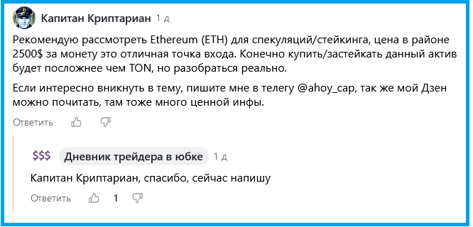 Об это я рассказала в отдельной статье и в комментариях к ней автор канала Капитан Криптариан предложил мне бесплатную консультацию. За что я ему очень благодарна.