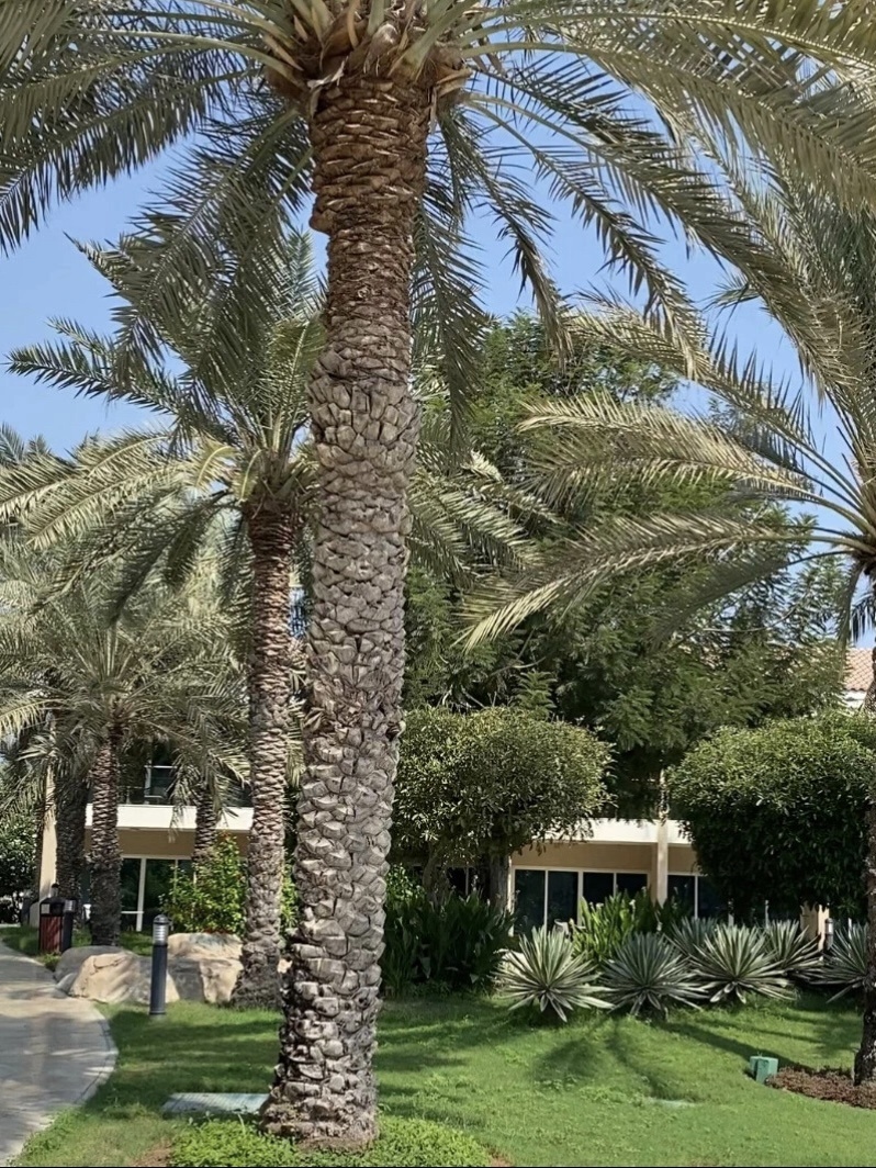 30 000 квадратных метров цветущей территории. Садовники создали посреди пустыни богатое растительностью и красивым ландшафтом место. Все оттенки зеленого! Свисающие лианы, шикарные длинные пузатые пальмы, белоснежные или с оттенками желтого, красного, плюмерии. Они прекрасны! По территории приятно прогуляться, выложенные дорожки, аккуратно подстриженные газоны.
