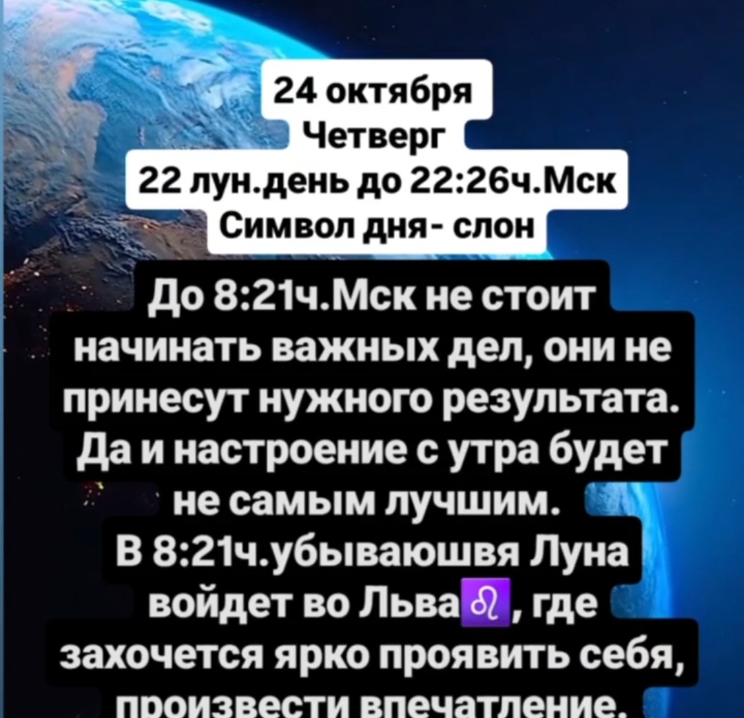 До 8:21ч.Мск не стоит начинать важных дел, они не принесут нужного результата. Да и настроение с утра будет не самым лучшим. В 8:21ч.убываюшвя Луна войдет во Льва♌️, где захочется ярко проявить себя, произвести впечатление. Хороший день для публичных выступлений и презентаций. Но постарайтесь быть не слишком навязчивым, т.к. эмоциональный фон сегодня на пределе. Сны дают информацию о решении проблем ✅️Стрижка ✅️ покупки #гороскоп #астрология #луна #астрологияонлайн #астропрогноз #овен #телец #близнецы #рак #лев #дева #весы #скорпион #стрелец #козерог #водолей #рыбы #затмениесолнца #солнечноезатмение #затмение #новолуниевблизнецах #загадываемжелания #загадайжелание #желание #Венера #мечтысбываются #полнолуние