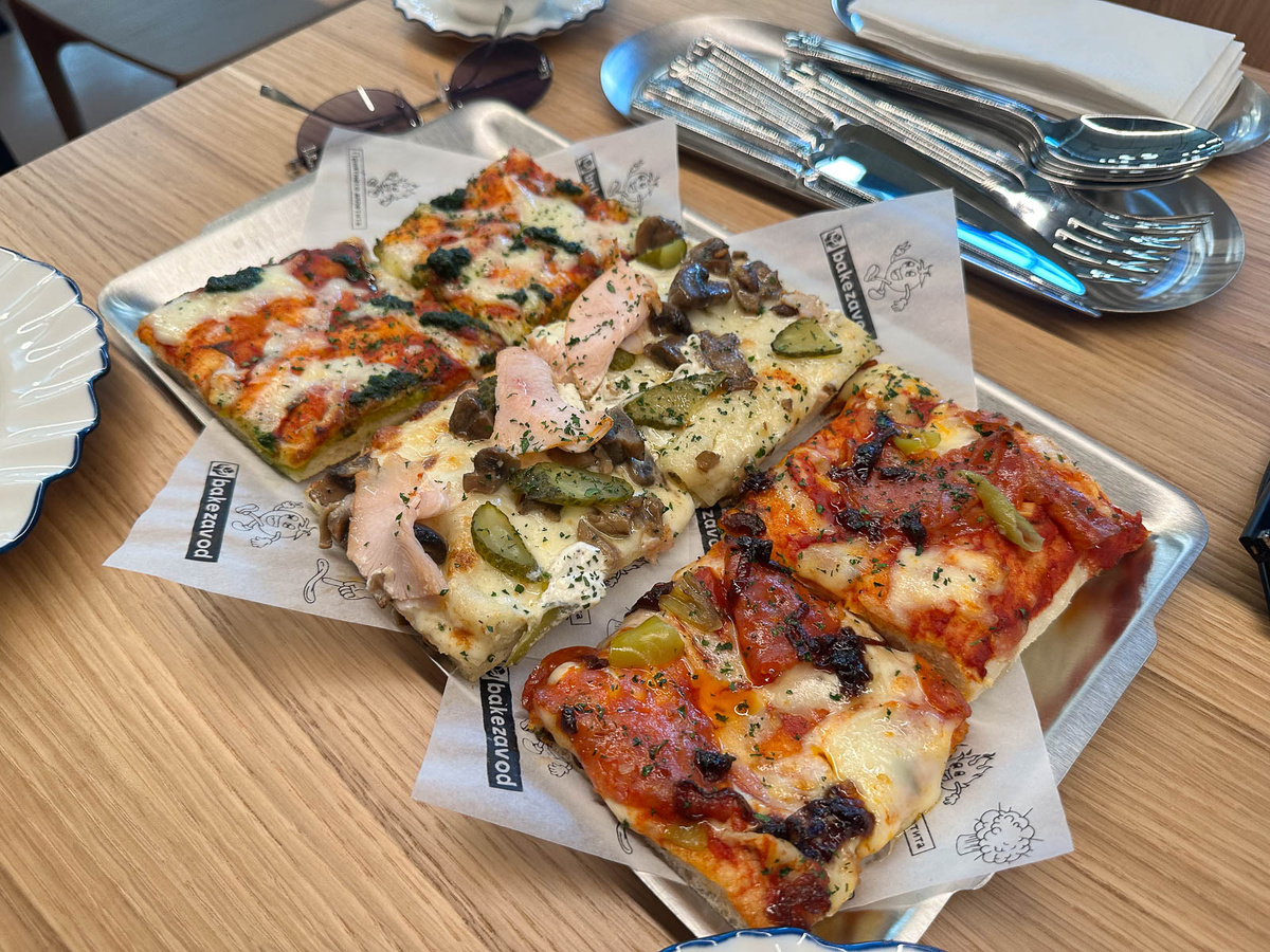 Такой формат пекарен придёт на смену кофейням, они сами будут варить хипстерский кофе разных обжарок, печь по утрам хлеб, готовить нам завтраки и выдумывать круассаны разных форм. К телу, господа, новая пекарня «Бэйк Завод» из сети заведений на Октябрьской (сэндвичи, блины, бургеры, пицца и булки) по концепции - копия их же «Лет ит би». Обошлось без школьных парт, в красивом интерьере с новой едой, за ней мы, собственно, и пришли. Бонжёрно! Козырное место на въезде в ЖК «Левада» между паркингом и гранд «Санта», на парковке которой и оставляем Ламбаджили. Объёмное помещение с высокими потолками, такими же окнами и открытой кухней, которую видно даже через туалет. С утра на бетонную стену проецируют мультики, аромат свежеиспеченной хлебной булки провоцирует на поесть. Короче, теперь это самое уютное заведение на районе, а их тут уже десять. На низком старте сетевая «Хинкальня». В меню завтраки, хлеб, яйца, по кускам римская пицца, круассаны разных мастей, с десяток рандомных десертов. Ср