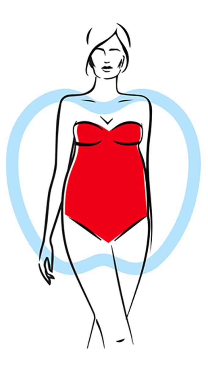 Избегайте двубортных пиджаков, а также слишком объемных или обтягивающих верхов, которые могут подчеркивать лишний объем в области живота. Большое количество деталей и украшений буде выглядеть неуместно в образе. Идеальные топы – это свободные модели с акцентом на талии и бюсте. Интересные принты и текстуры помогут отвлеч