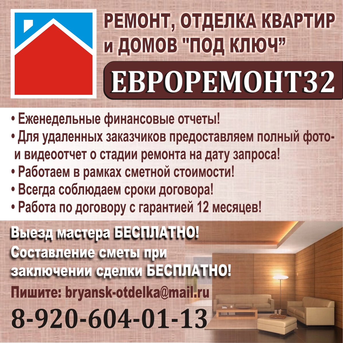 Выбор профессионалов для ремонта дома или квартиры – это важный шаг, который может значительно повлиять на конечный результат. Компания Евроремонт32 предоставляет услуги по ремонту помещений любой сложности и гарантирует высокое качество работы. Одним из главных преимуществ компании Евроремонт32 является команда опытных специалистов, каждый из которых имеет богатый опыт работы в своей области. Это позволяет им быстро и точно выполнять задачи любой сложности, начиная от демонтажа старых покрытий и заканчивая установкой новой сантехники и электрики. Компания Евроремонт32 предлагает полный спектр услуг по ремонту, включая разработку дизайн-проекта, проведение подготовительных работ, подбор и доставку необходимых материалов, выполнение всех видов строительно-отделочных работ, а также финишную уборку после завершения ремонта. Важным аспектом работы компании Евроремонт32 является соблюдение сроков выполнения работ. Специалисты компании строго следят за графиком выполнения работ и своевре