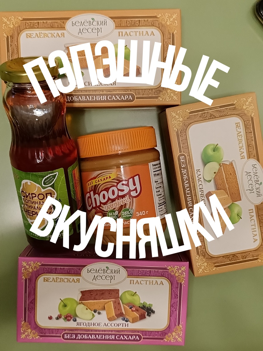 Себе я сделала подарок - Пакет со сладостями. Они в себе содержат Витамины радости. Питательная арахисовая паста без сахара Choosy.Полезна для спортсменов,веганов,зожников.Натуральный состав-чем меньше ингредиентов,тем лучше.Нормализует уровень сахара, холестерин в крови,является источником витаминов и микроэлементов.Злоупотреблять пастой не стоит, за завтраком можно съесть одну столовую ложку. Сироп из топинамбура натуральный с черникой. Взяла на пробу. Отзывы проштудировала.Мне он полюбился. На вкус приятный,сладкий,не очень густой.Годен для любой выпечки и для горячих блюд.Капелюшку добавляла в натуральный йогурт, и в утренние каши.Предлагают добавлять в чай-кофе,не пробовала.Пью эти напитки без сахара. Барабанная дробь...и представляю вашему вниманию фаворита моей сладкой покупки - Белёвская пастила. Частенько ею балуюсь,покупаю в Fix Price. В составе пастилы только яичный белок,яблоки,чёрная