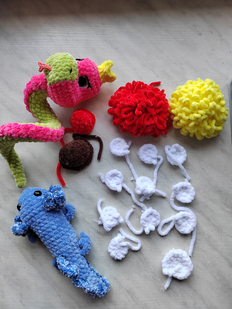 За пару вечеров навязала заготовок для семечек и лягушек, 2 шубки для ёжиков, аксолотля и змейку. Надо продолжать в том же духе, тогда может успею бо́льшую часть того, что запланировала. А пока побежала довязывать несколько брелков в полочку. Завтра планирую снять для вас кусочек видео, и отнести их уже в магазин. Пожелайте мне удачи☺️