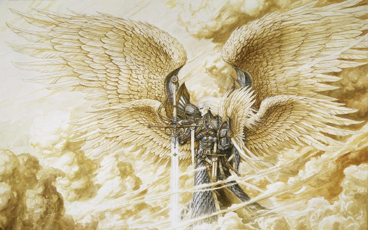 Херувимы — это ангельские существа, упоминаемые в традициях христианства, иудаизма и ислама. В религиозных и художественных источниках их считают одними из высших ангелов, обладающими особой святостью и божественной мудростью. Название «херувим» происходит от древнееврейского слова חֲרוּבִים (харувим), что переводится как «завеса» или «охрана». В Библии впервые они появляются в книге Бытия, где изображаются как стражи райского сада у входа в Эдем. Также их можно увидеть в книге Исход — на крышке ковчега завета изображены два херувима с распростертыми крыльями. В христианском искусстве херувимов часто изображают как ангелов с множеством крыльев (обычно шести или более), с лицами человека, льва, быка или орла — символами различных аспектов божественной силы и мудрости. Иногда их рисуют как сияющие фигуры с множеством глаз или как сложные мистические создания. Херувимы входят в девятый ангельский чин по церковной иерархии (по классификации Псевдо-Дионисия Ареопагита). Они считаются очень