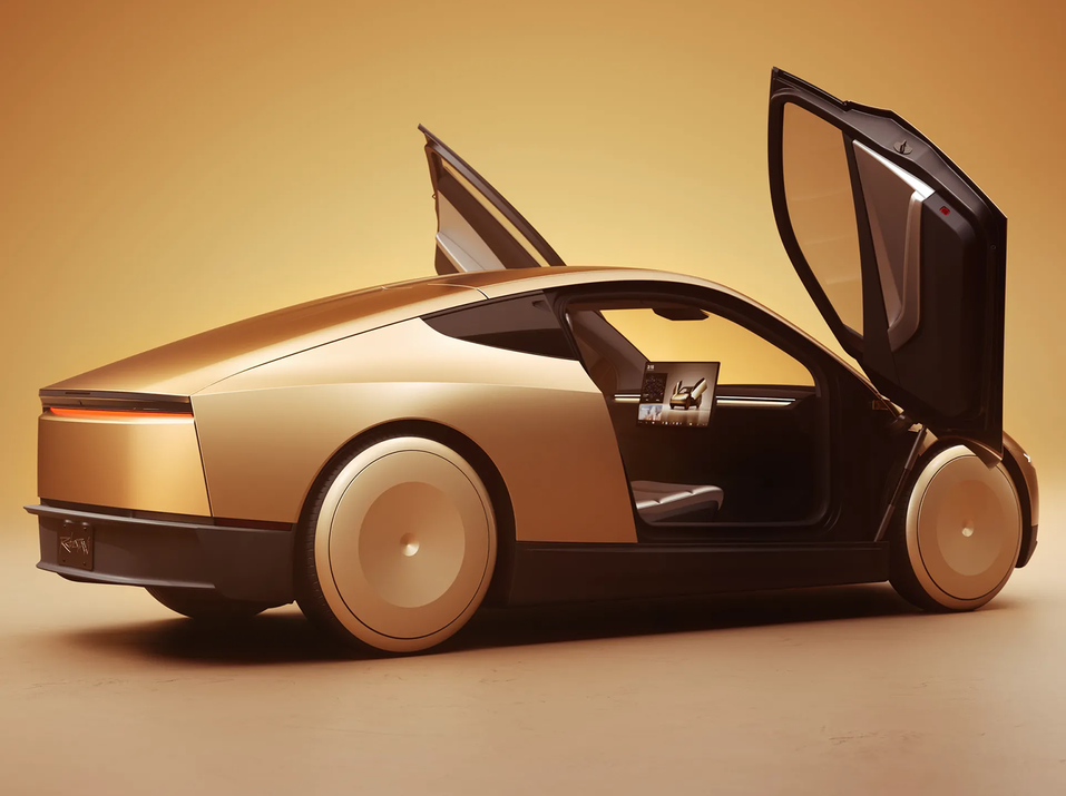 Роботакси отличает футуристичный дизайн: гладкий аэродинамичный кузов, огромные колеса, двери, открывающиеся вверх. Машина полностью управляется ИИ — руля и педалей в ней нет. Подзарядка автомобиля осуществляется не через розетку, а благодаря беспроводной системе — нужно лишь проехать по специальной «зарядной пластине». В салоне есть место только для двух пассажиров.