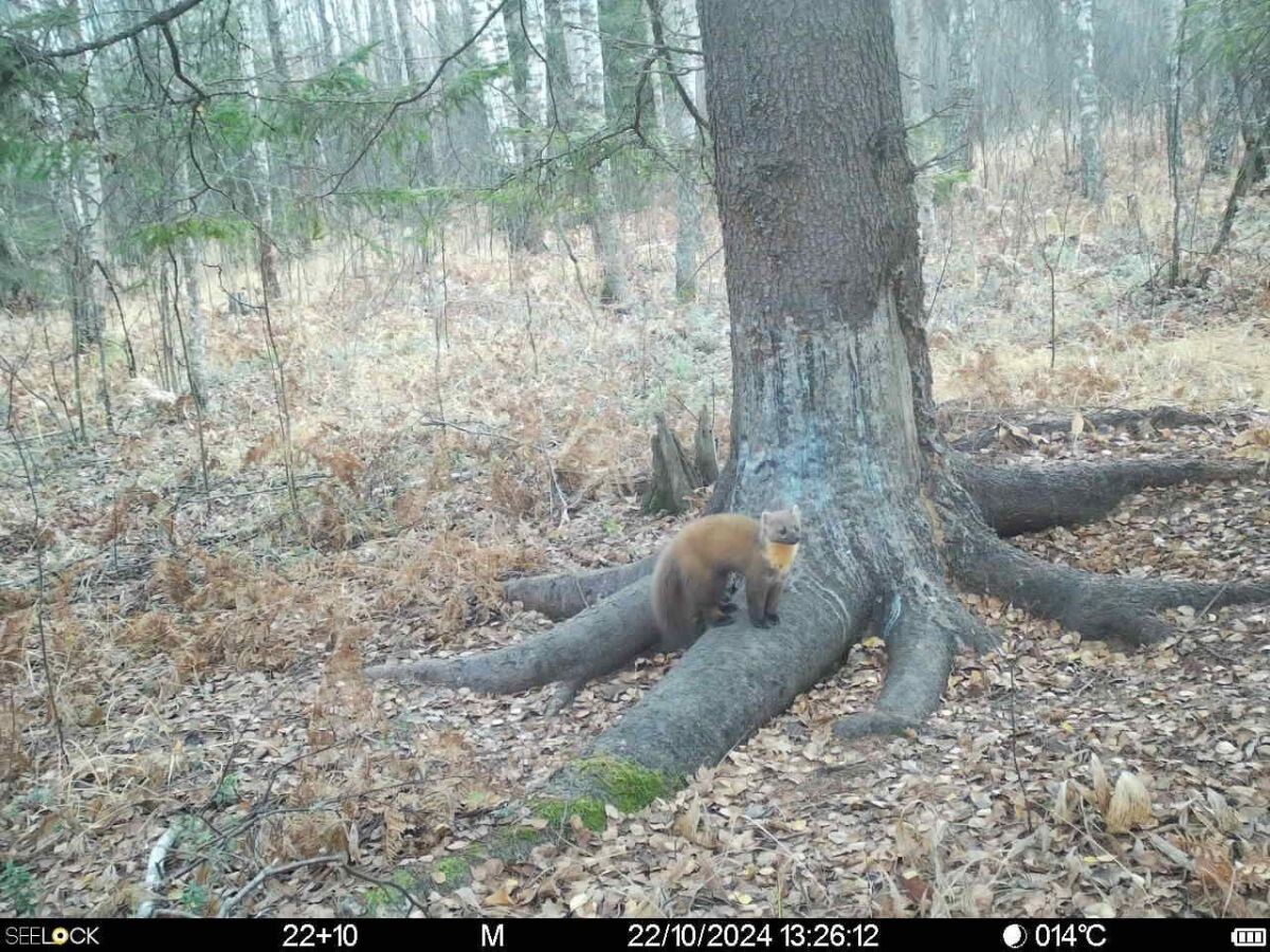 Куница попала на фотоловушку в Окском заповеднике