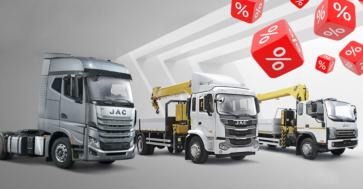 При приобретении автомобилей JAC N90, JAC N120 и JAC N200, в т.ч. и их модификаций, в лизинг по программе «JAC FINANCE 3.0» через компании-партнёров «JAC MOTORS», клиент получает скидку в размере 500 000 руб., включая НДС. Дополнительно, в случае отсутствия приобретаемого автомобиля на складе дилера, клиент может воспользоваться отсрочкой лизингового платежа со сроком, не превышающим 90 дней, до даты его прибытия и готовности к передаче дилером.