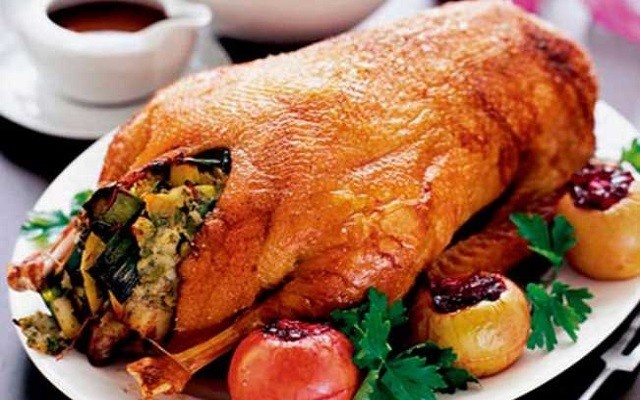 Видео — Рождественский гусь с яблоками и овощами смотрите здесь