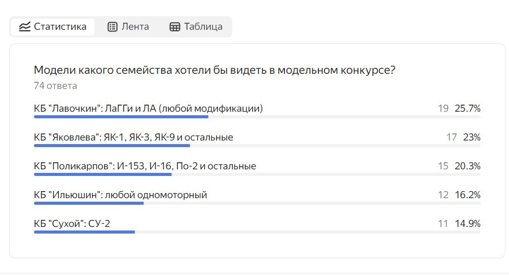 Какой-то странный выбор получился: толи алгоритмы увидели крамолу, толи тема не зашла, толи Москва отсыпалась после разудалой ночи, а только «голосовалку» с выбором дуэльного пистоля широкому кругу почитателей показывать не стали... Или тема не заинтересовала? Впрочем, не буду искать заговор массонов – всё наглядно демонстрирует «Закон десяти». Из общего числа показов только каждый четвёртый заинтересовался темой выбора модели для конкурса. Из тех, кто заинтересовался, только каждый второй дочитал публикацию до конца. Из дочитавших до финала – каждый второй проголосовал за модель. Вот и получается, по факту, только один из десяти посмотревших решил повлиять на события. Даже интересно теперь: сколько человек примут участие в конкурсе? Ну, а я , тем временем, резюмирую предварительные итоги предстоящего соревнования. Как уже писал ранее: в конкурсе участвуют модели одномоторных самолётов в масштабе 1/48, которые были актуальны в период с 1931 до 1964-ых годов. Производитель может быть лю